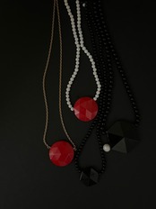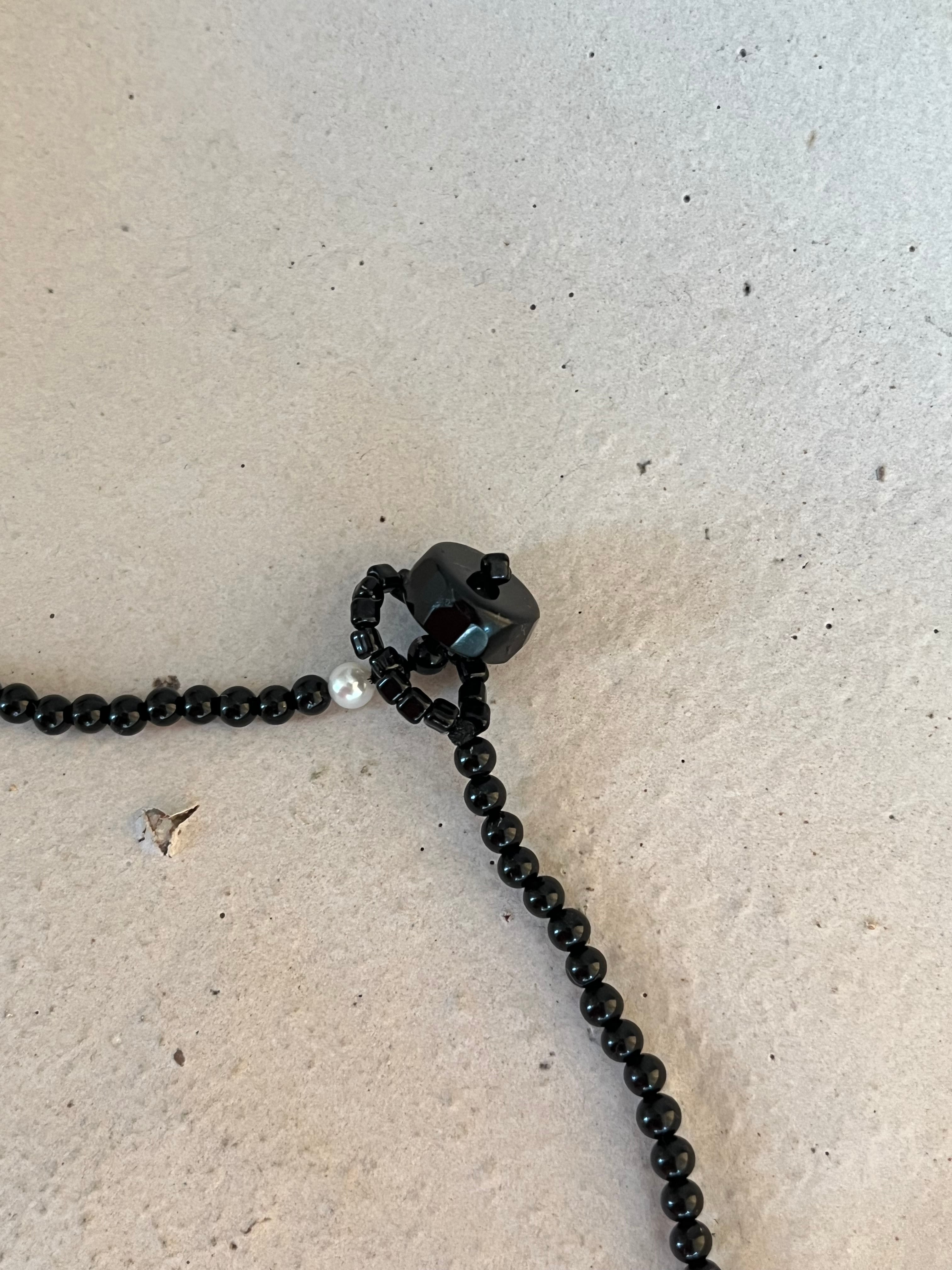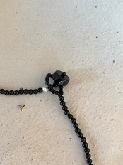 留め具には金属を使用せずにヴィンテージビーズをひっかけるタイプのクラスプレスの作りにしました。