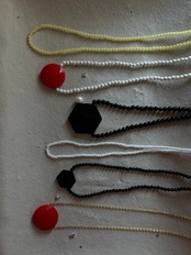 留め具には金属を使用せずにヴィンテージビーズをひっかけるタイプのクラスプレスの作りにしました。