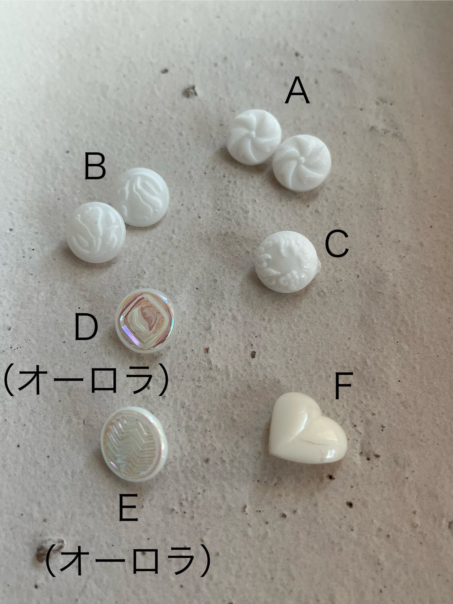 留め具に使ったチェコのヴィンテージボタンも素敵です。ボタンはオプションでお選びください。