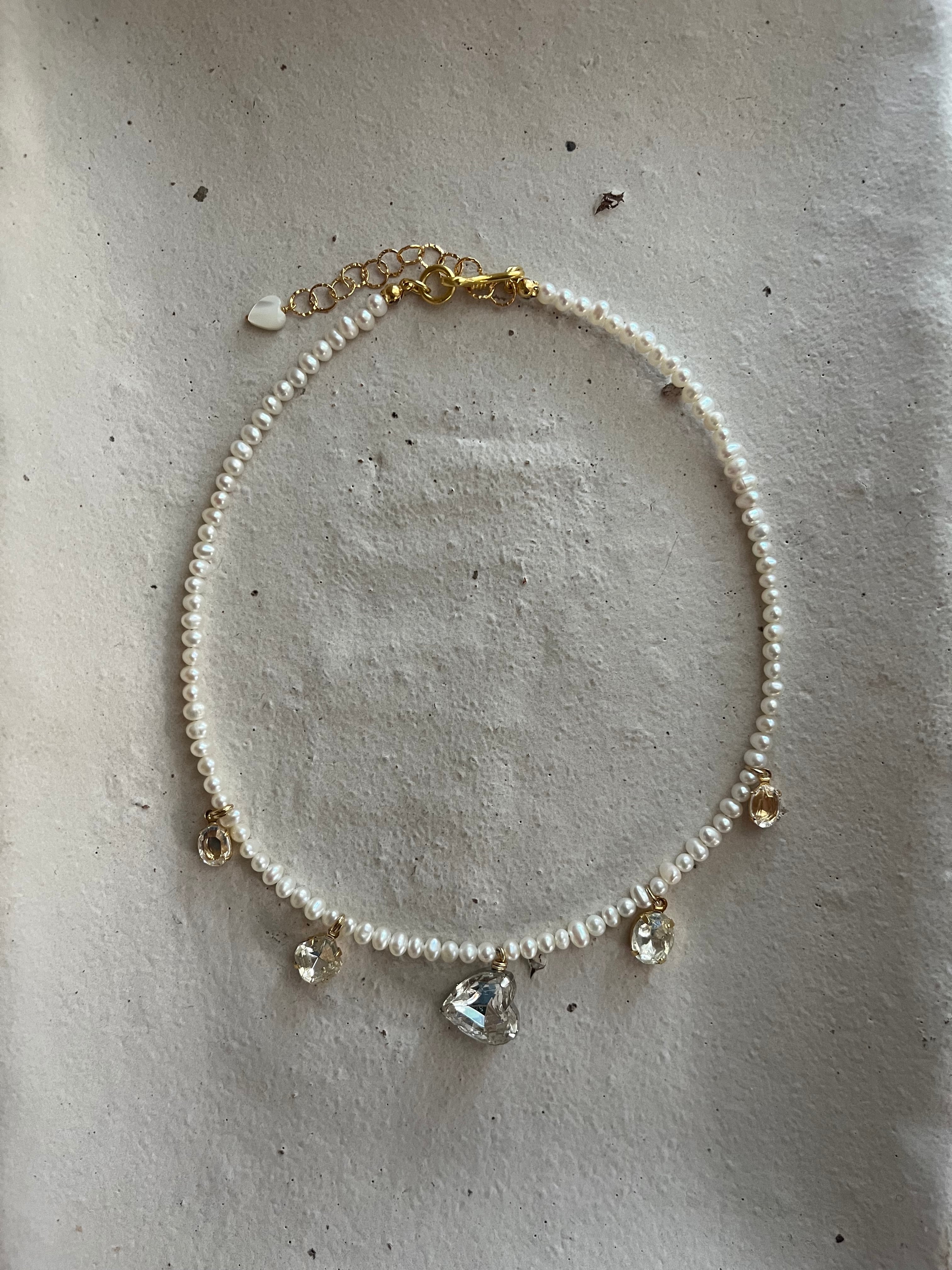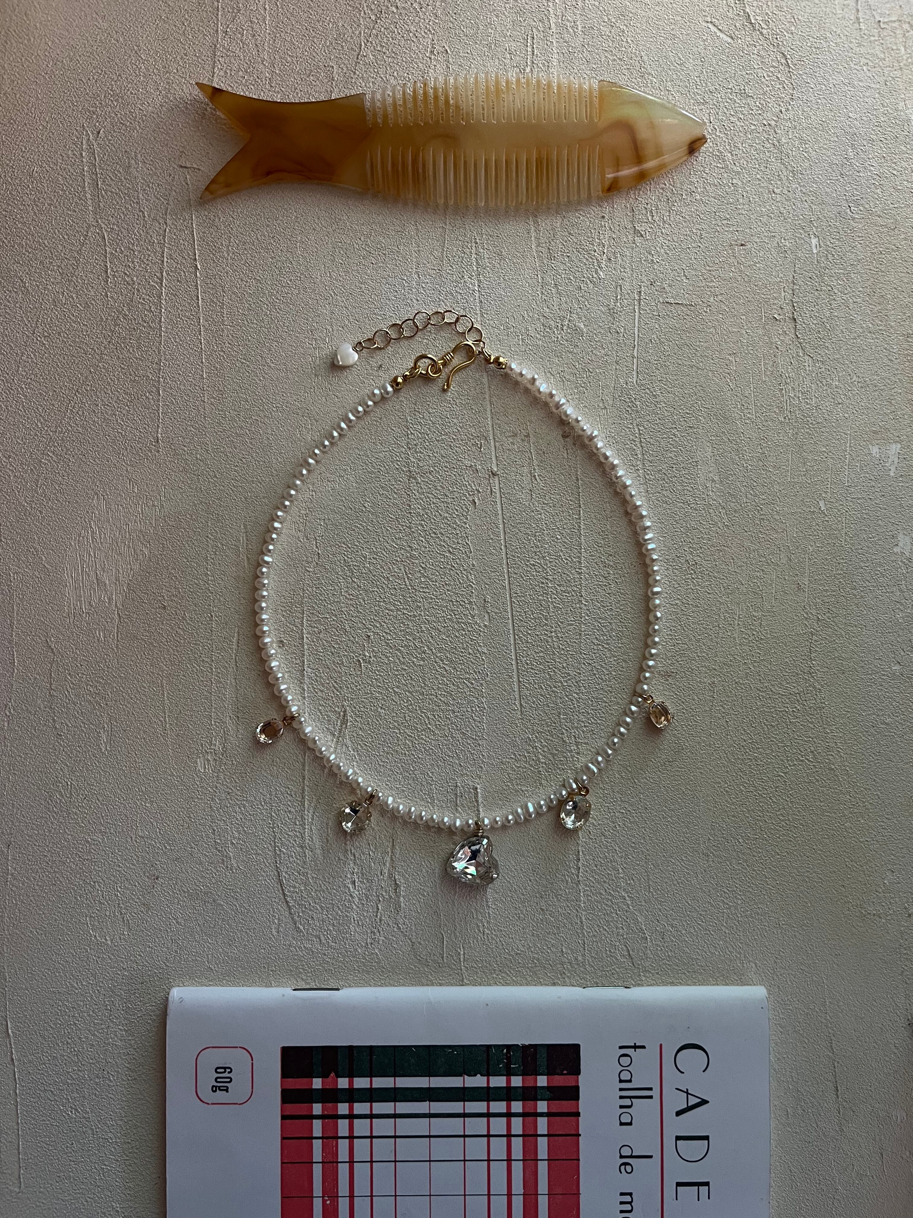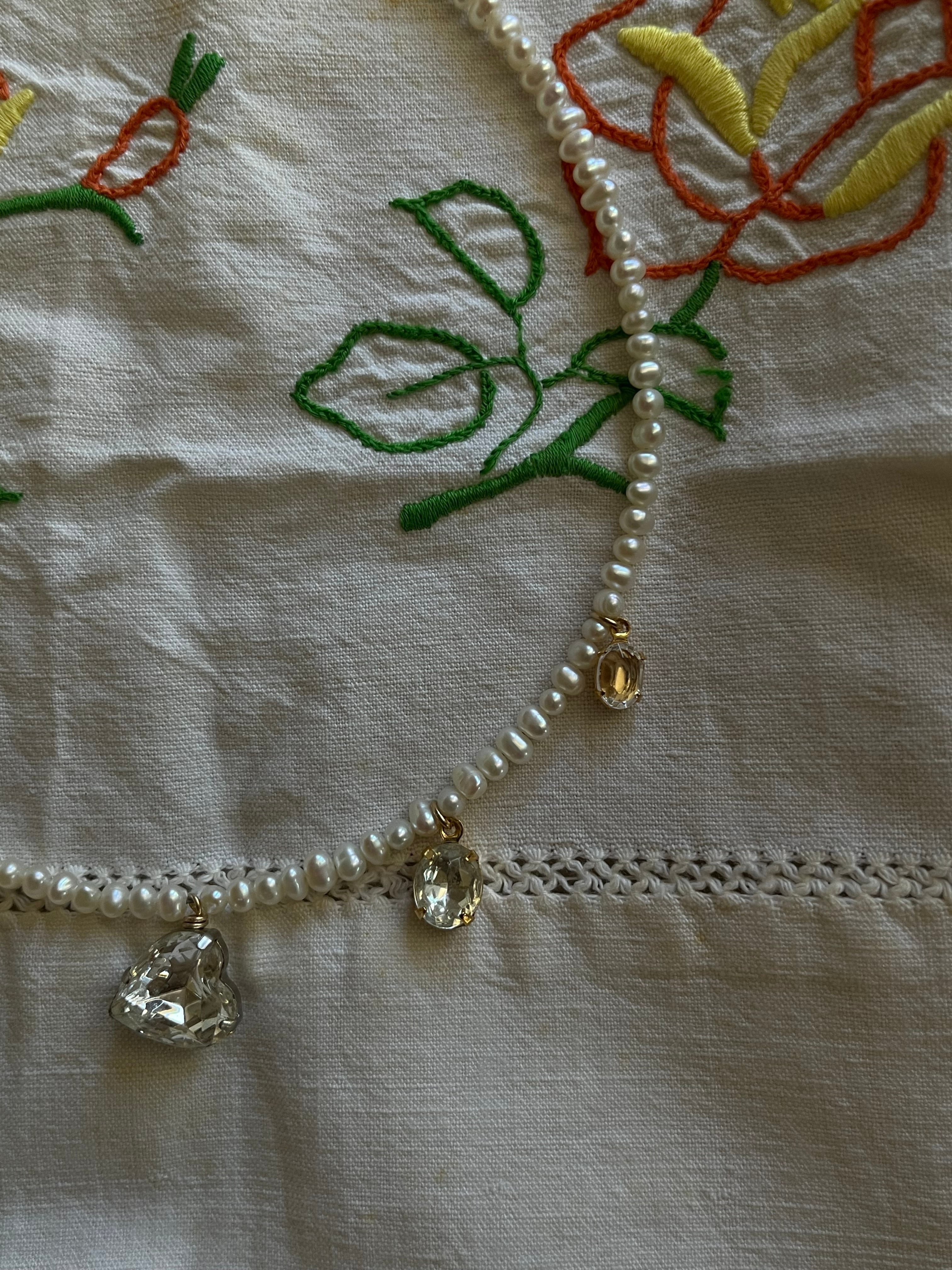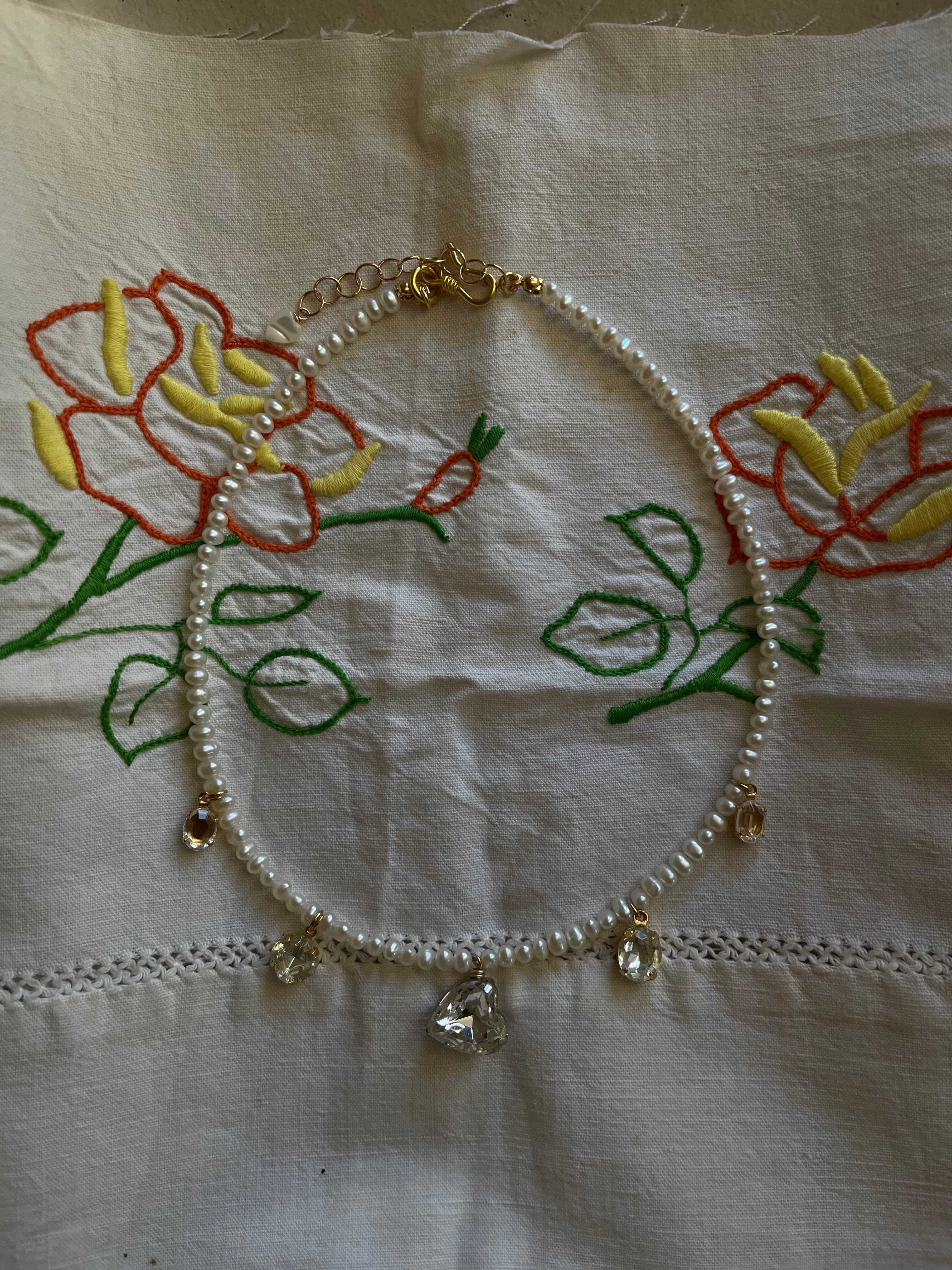 ヨーロッパのvintageのガラスストーンとパールを合わせてチョーカーに