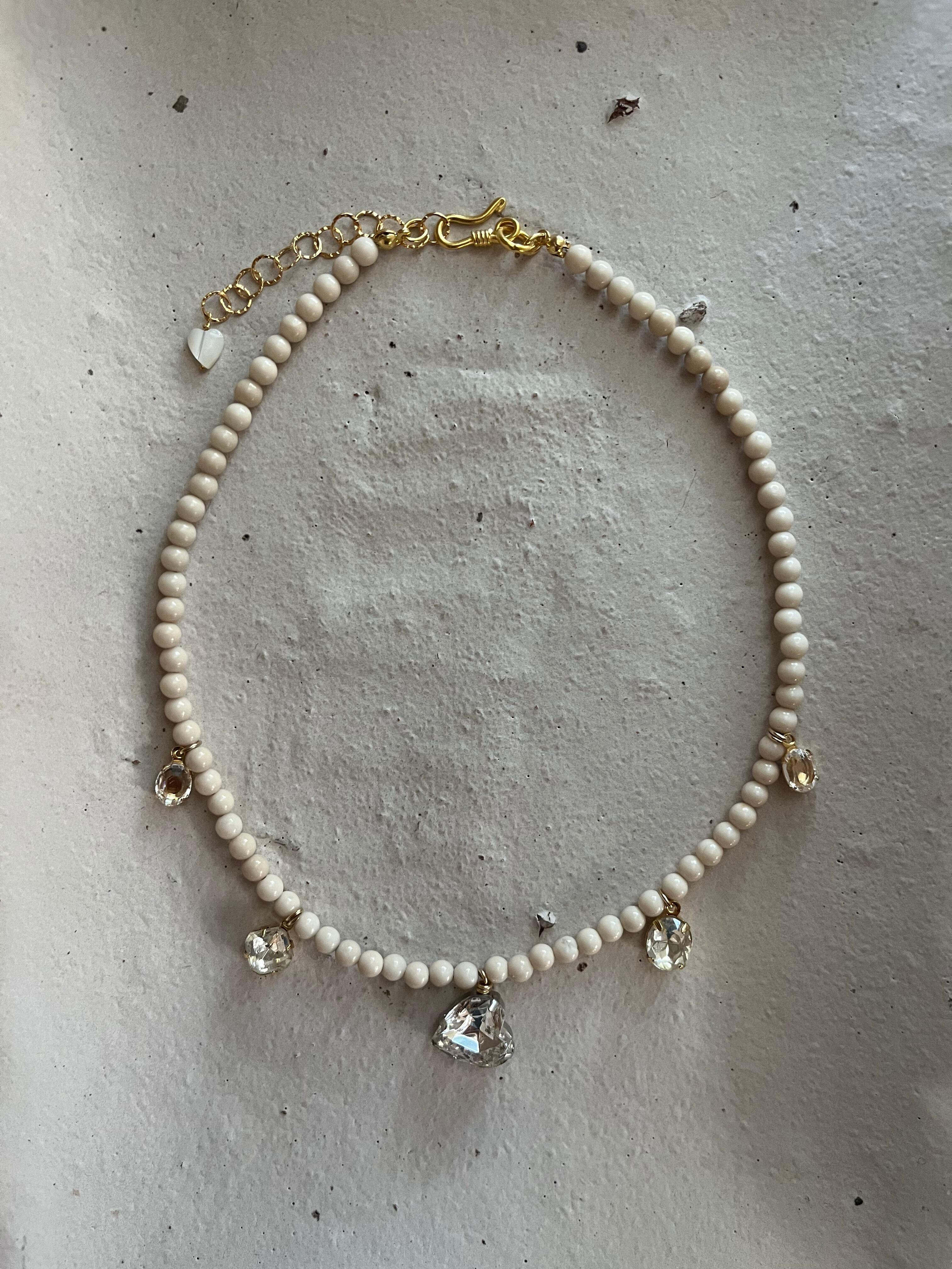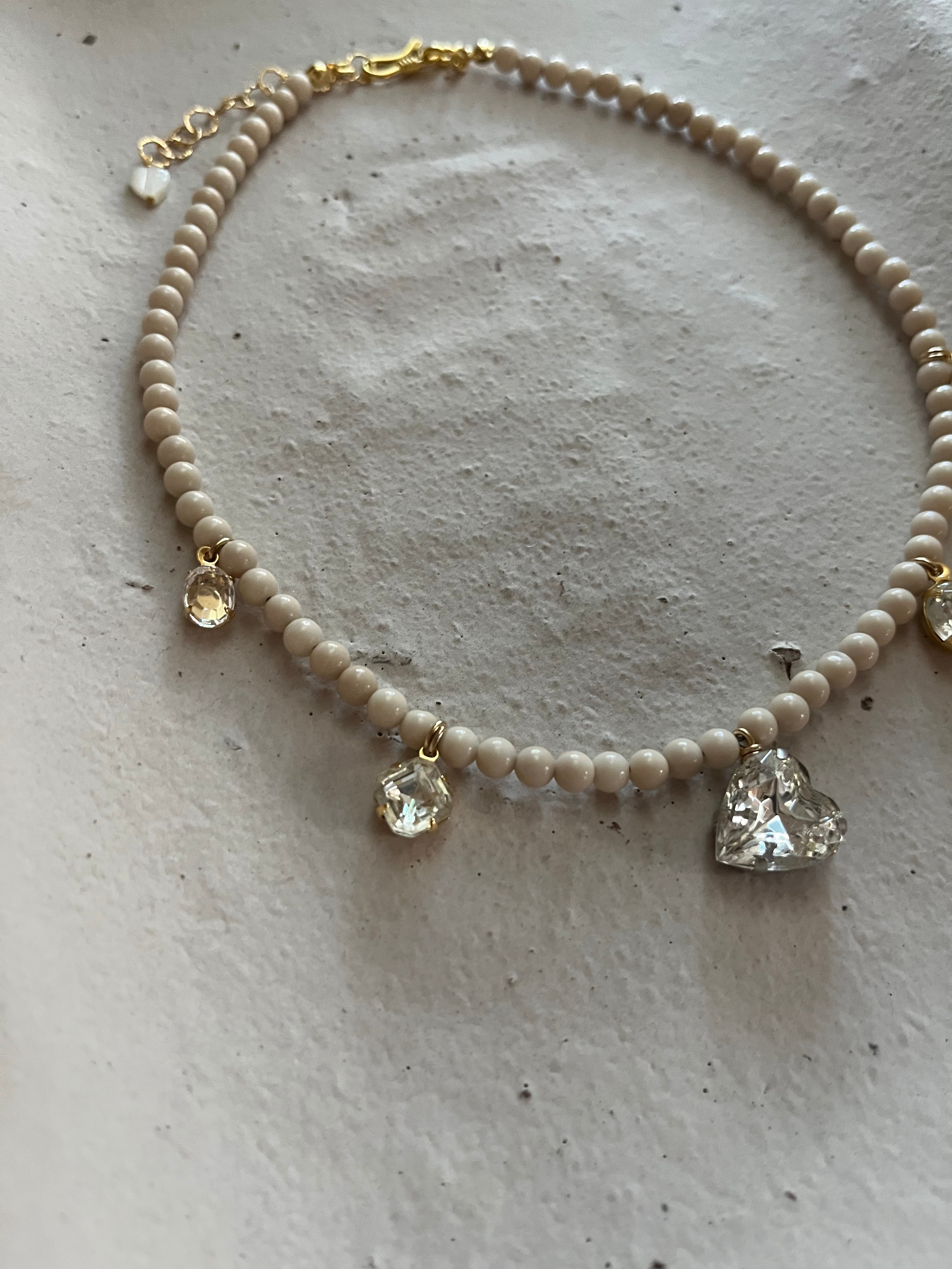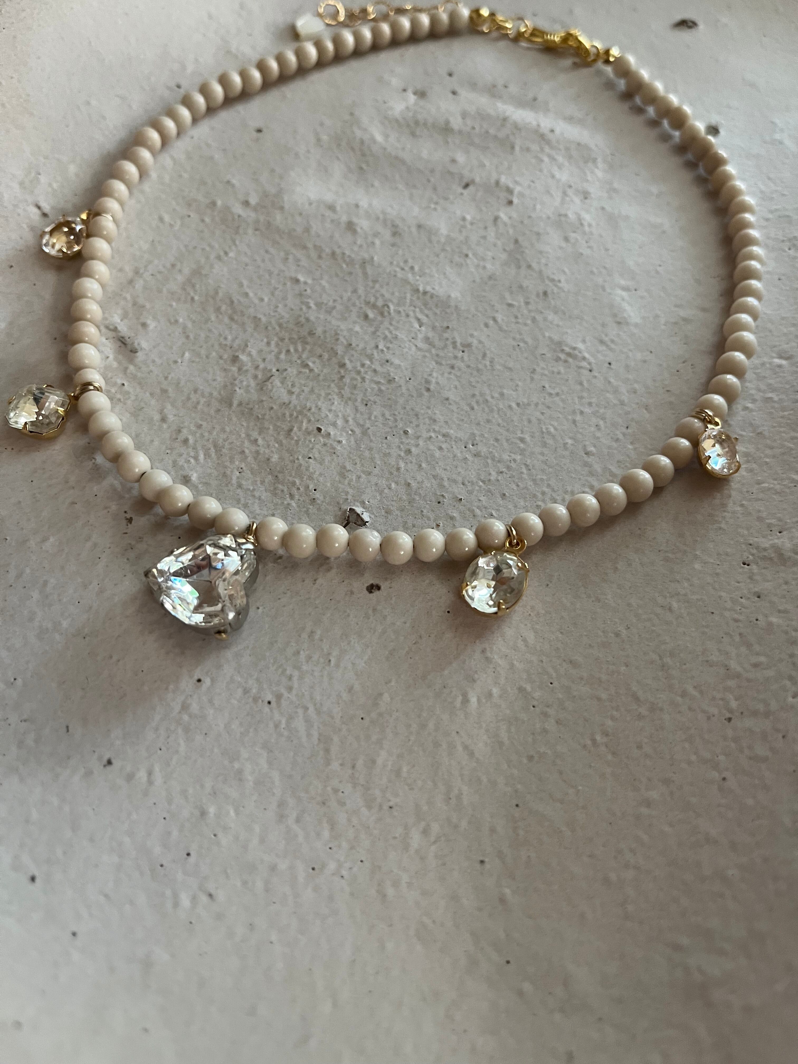 ヨーロッパのvintageのガラスストーンとミルクティーカラーのリバーストーンを合わせてチョーカーに
