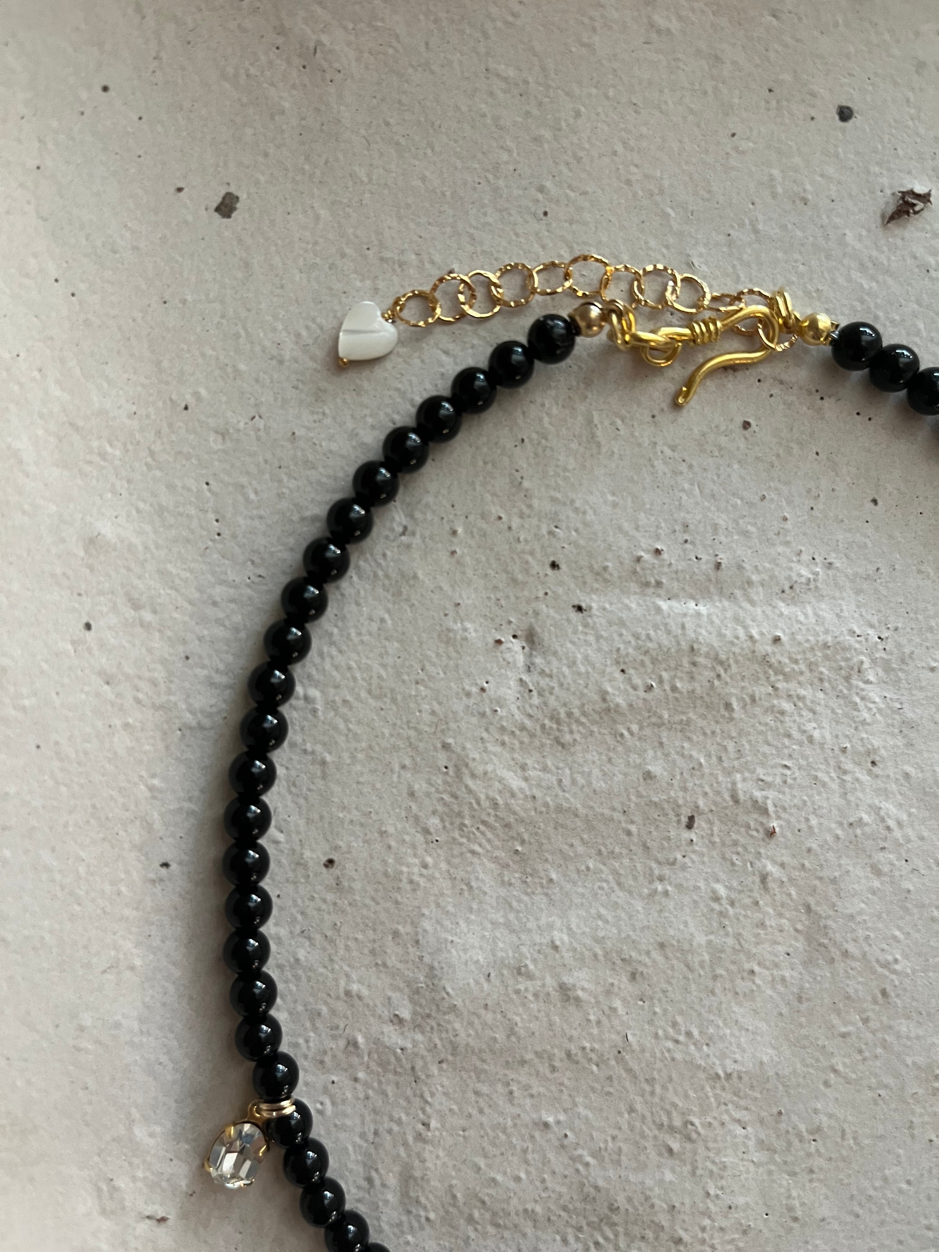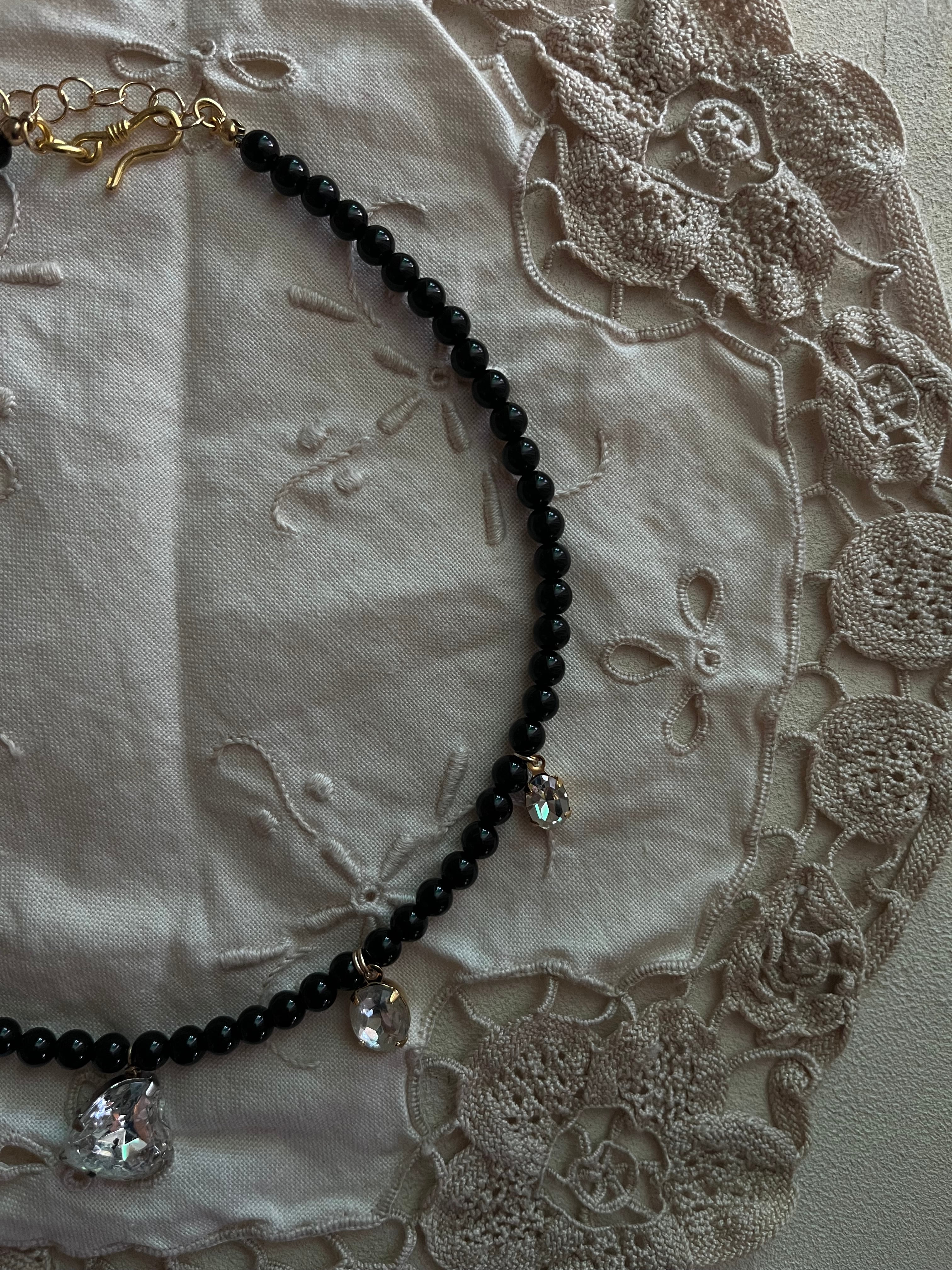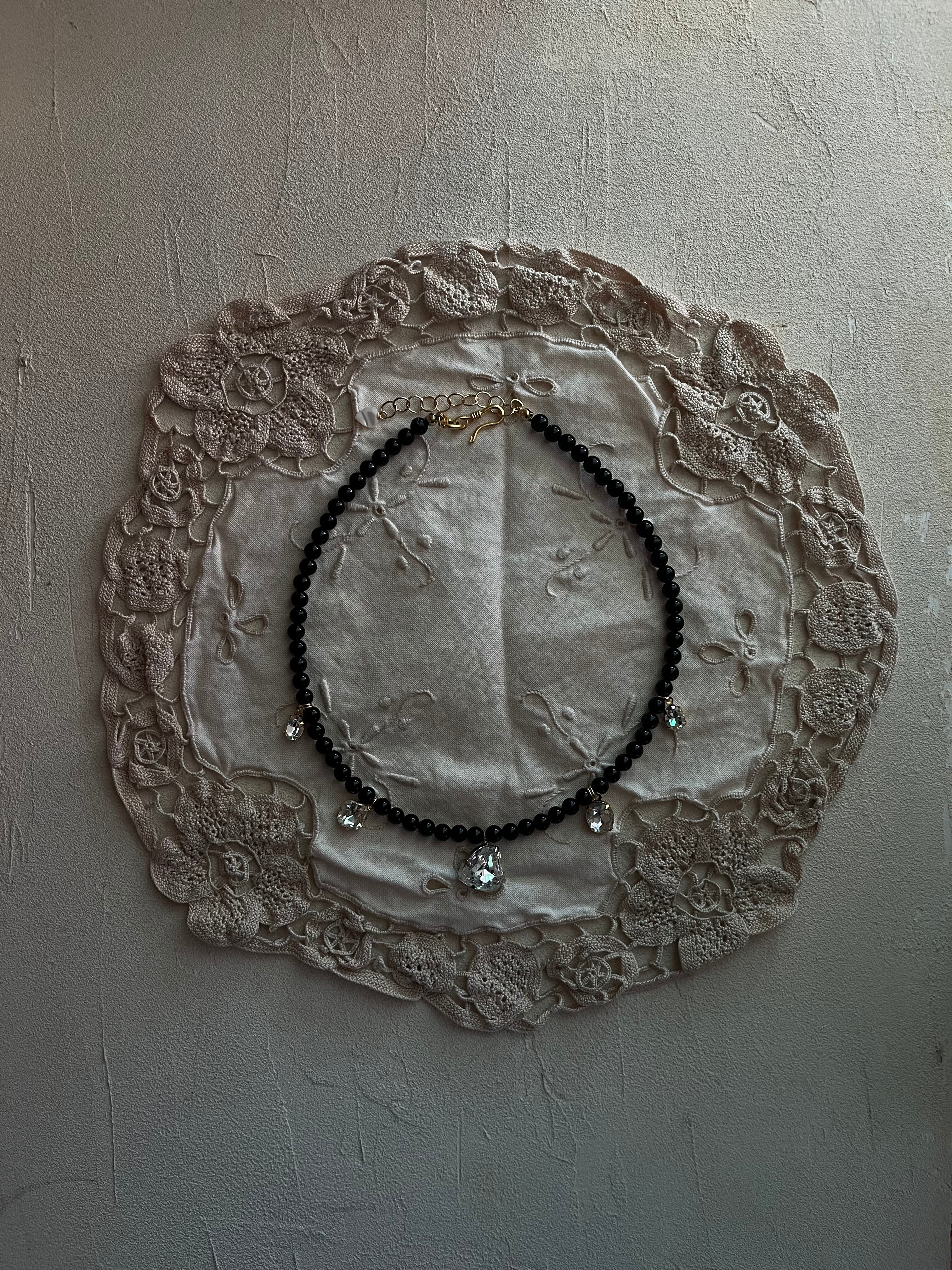 ヨーロッパのvintageのガラスストーンとブラックオニキスを合わせてチョーカーに