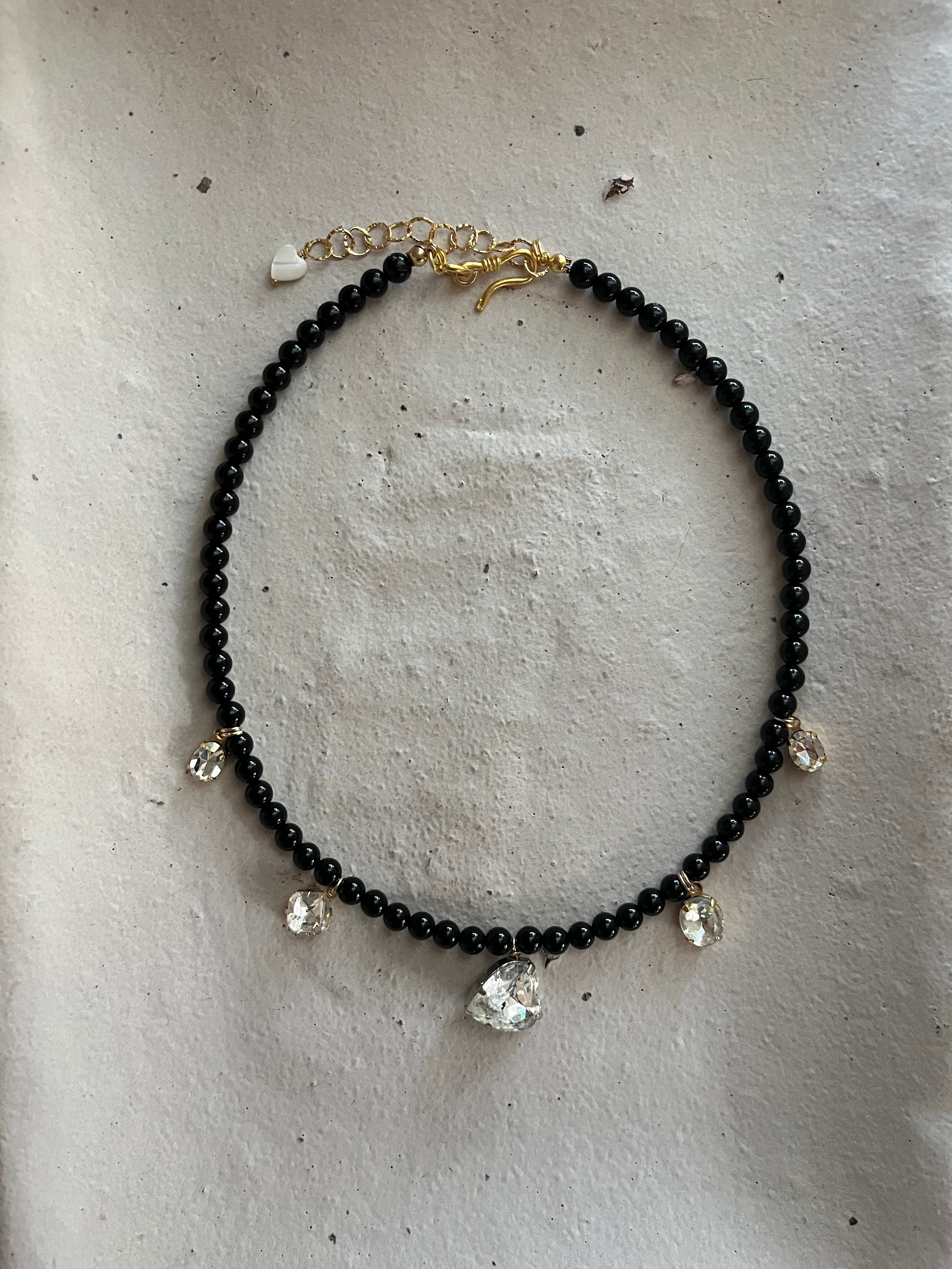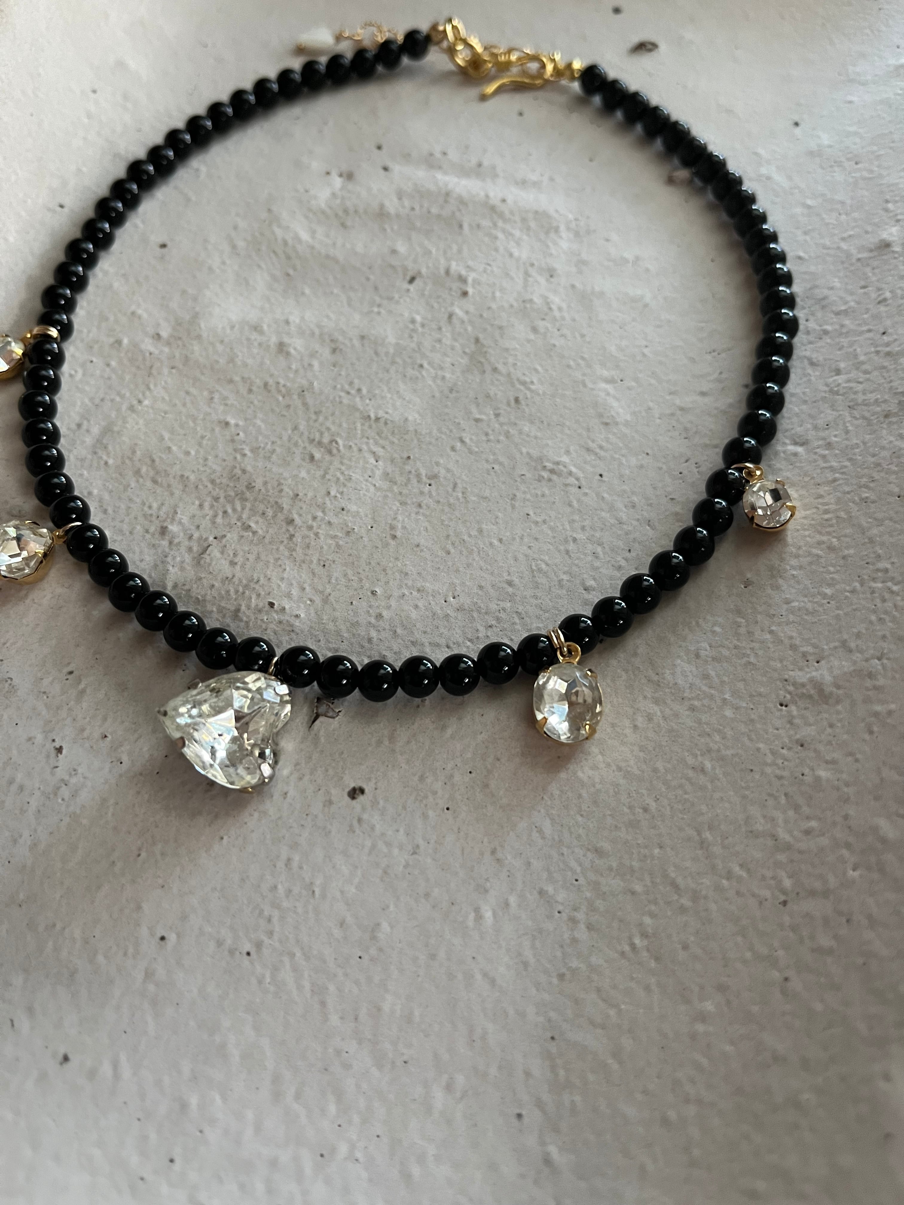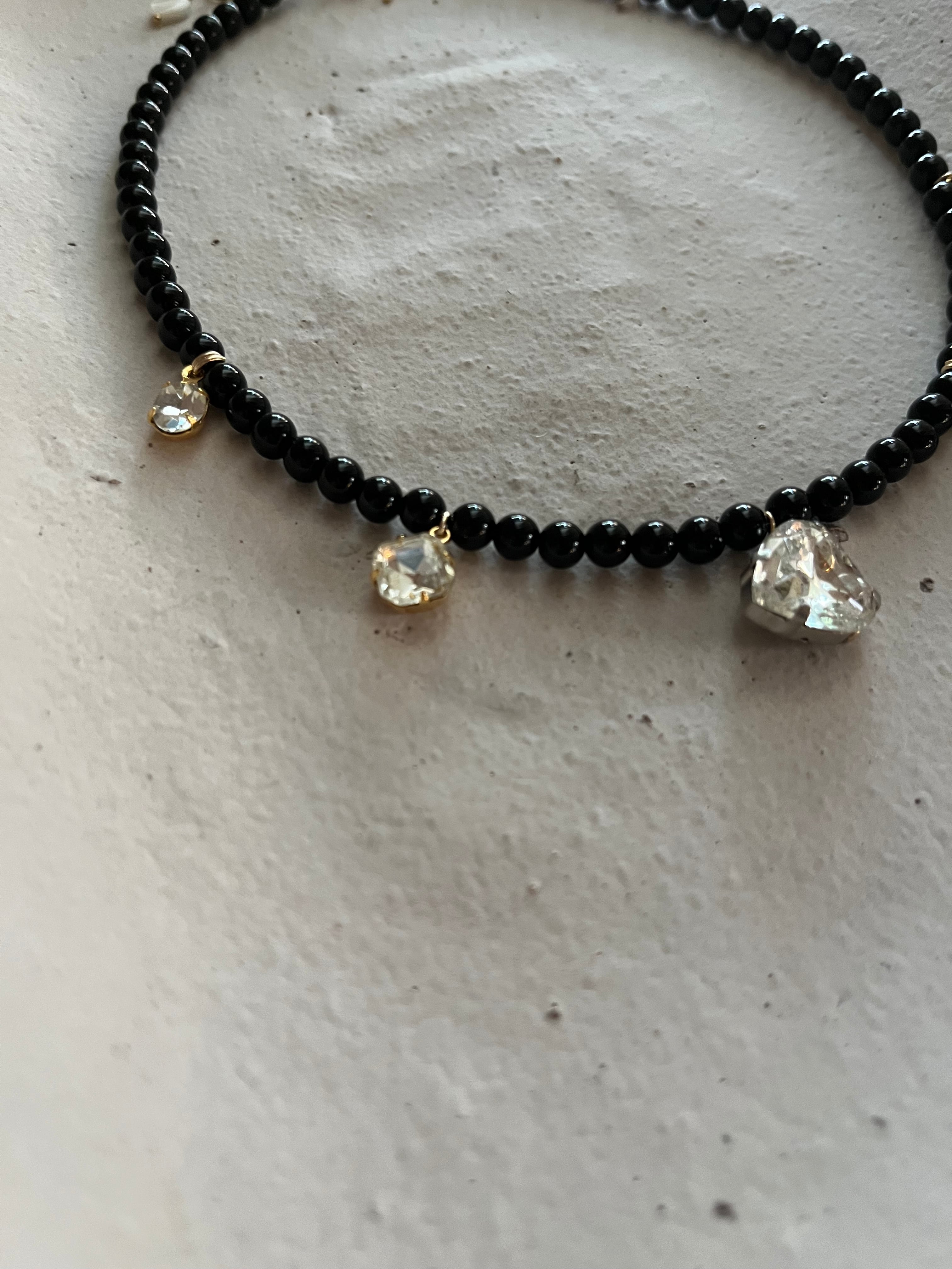 ヨーロッパのvintageのガラスストーンとブラックオニキスを合わせてチョーカーに