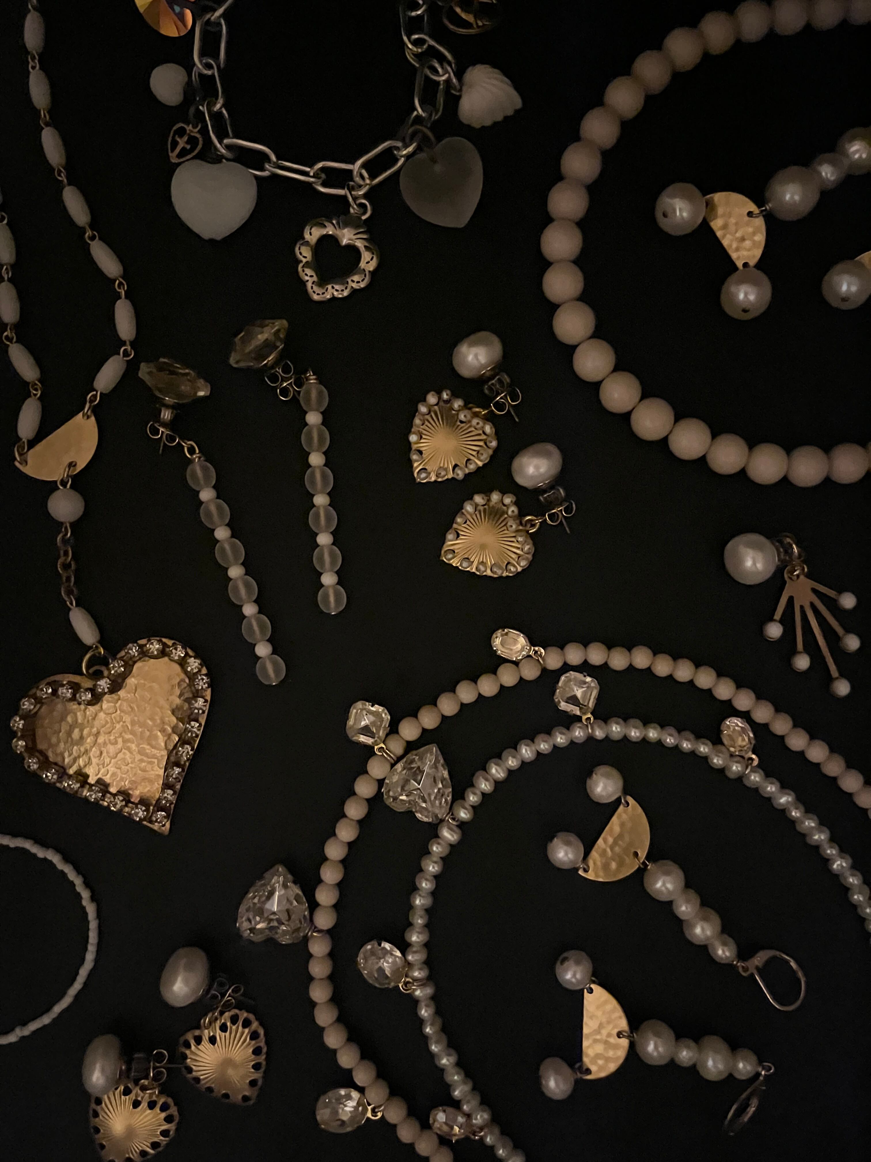 大人の遊び心を、とキラキラを楽しんでいただきたく形の違うガラスストーンを盛り込みました