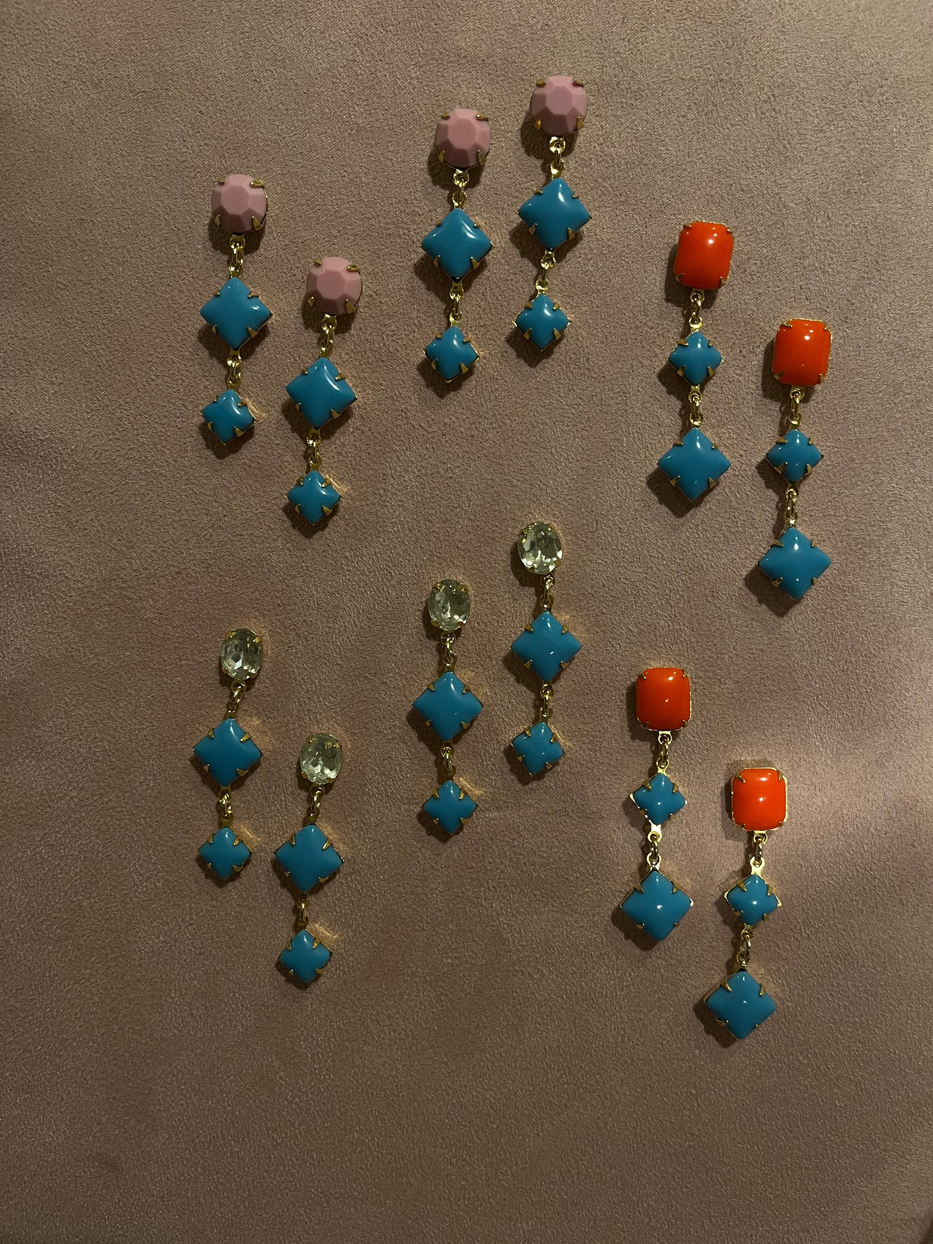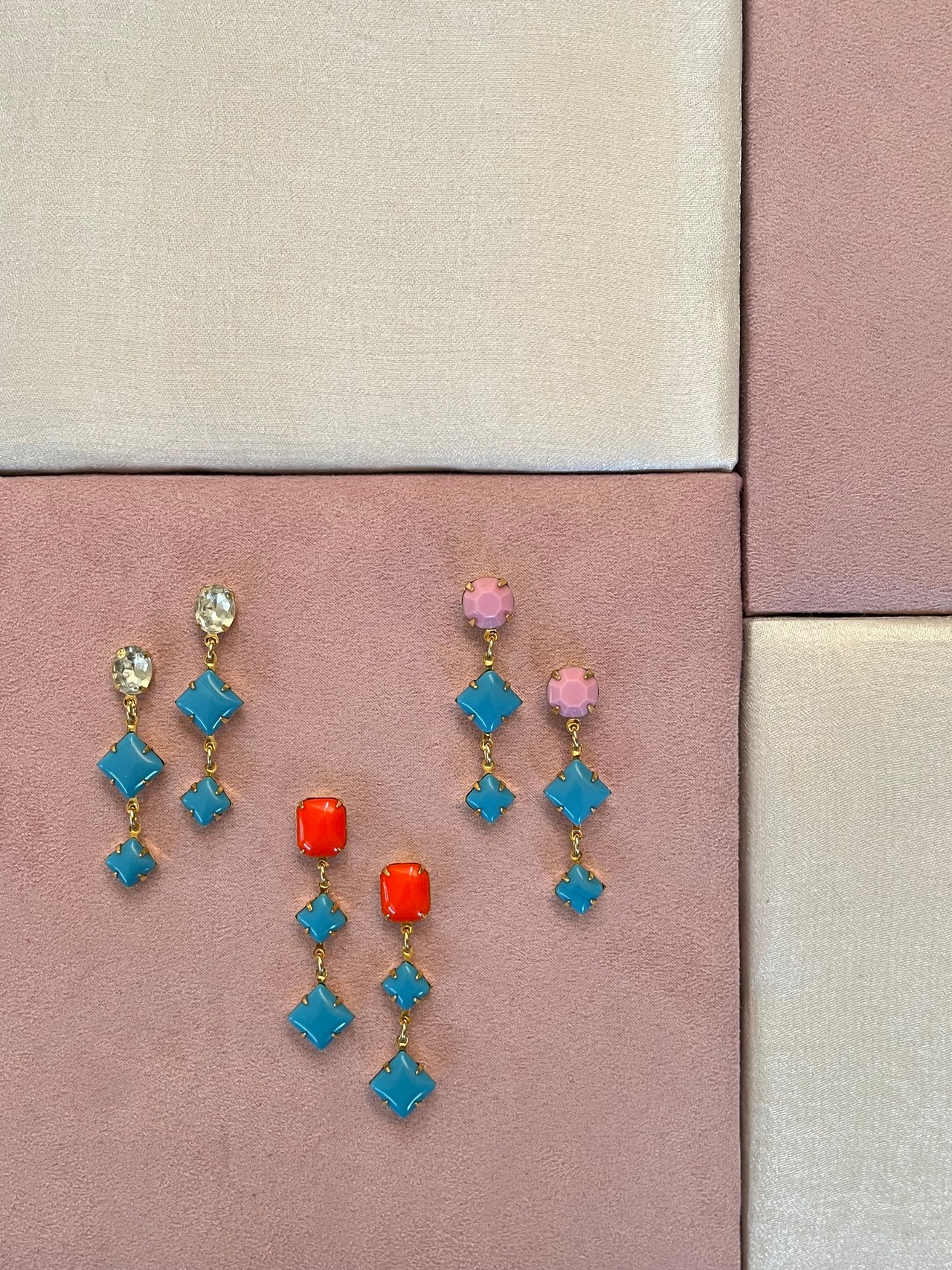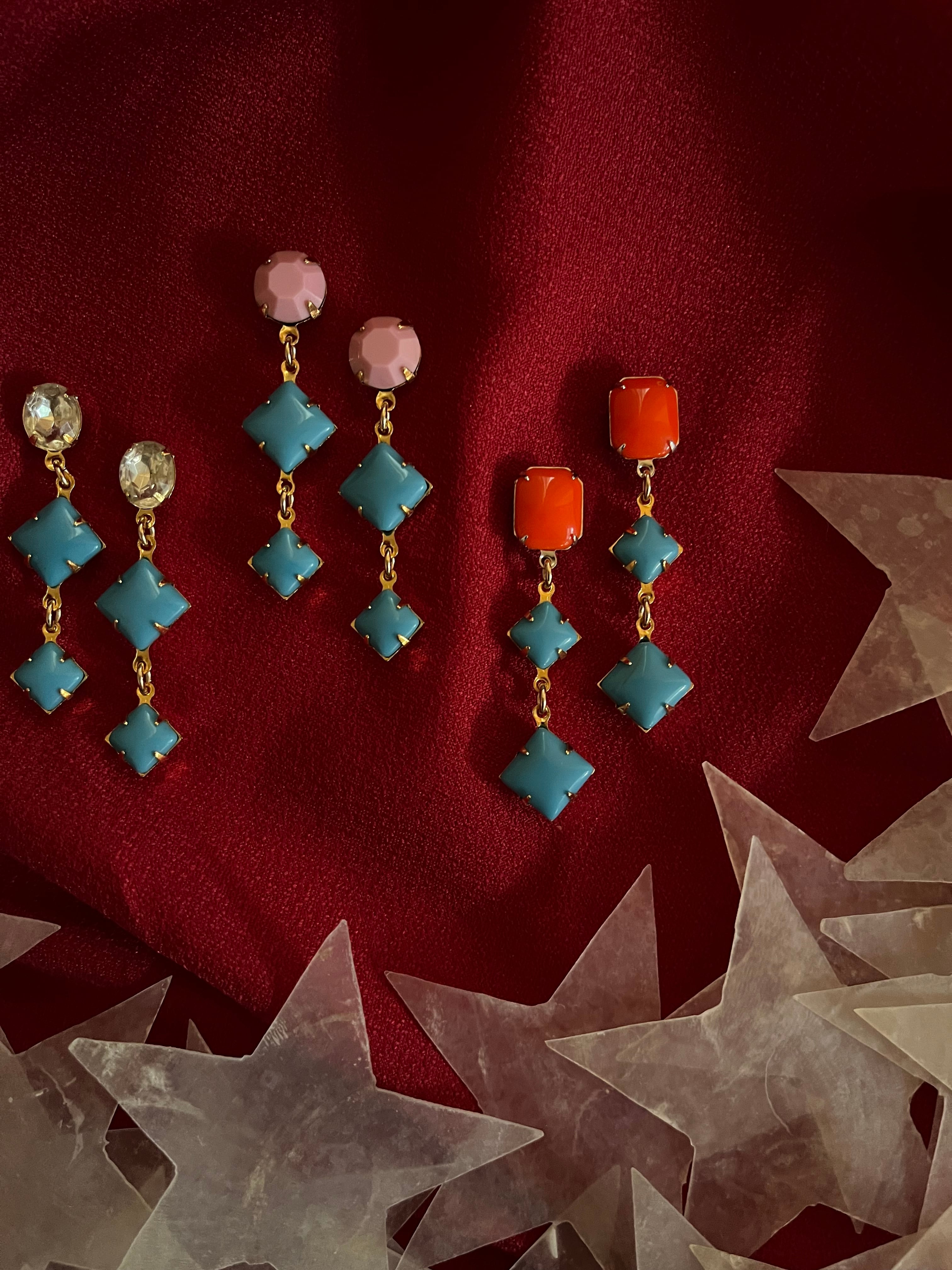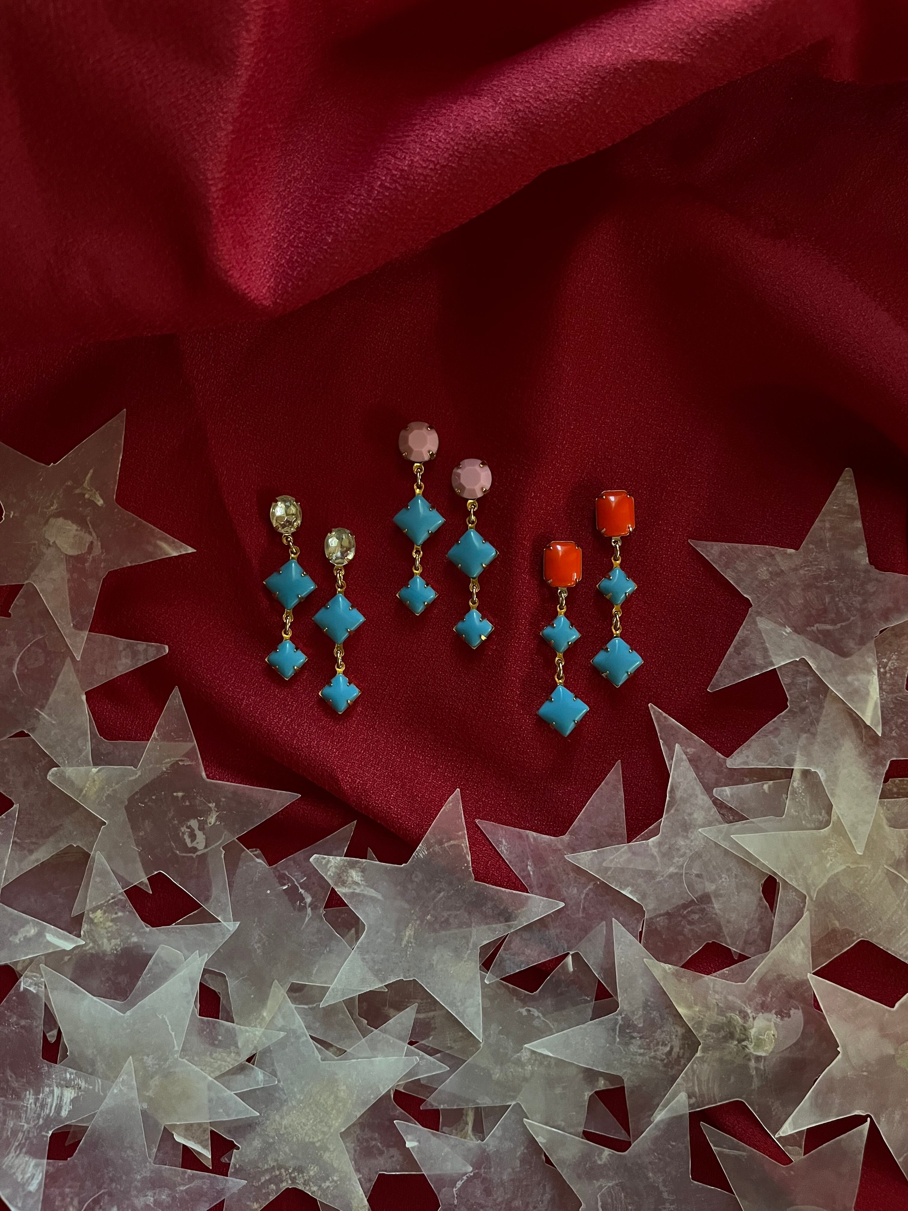 それぞれが魅力的なヴィンテージのガラスストーンを組み合わせてピアスにしました。