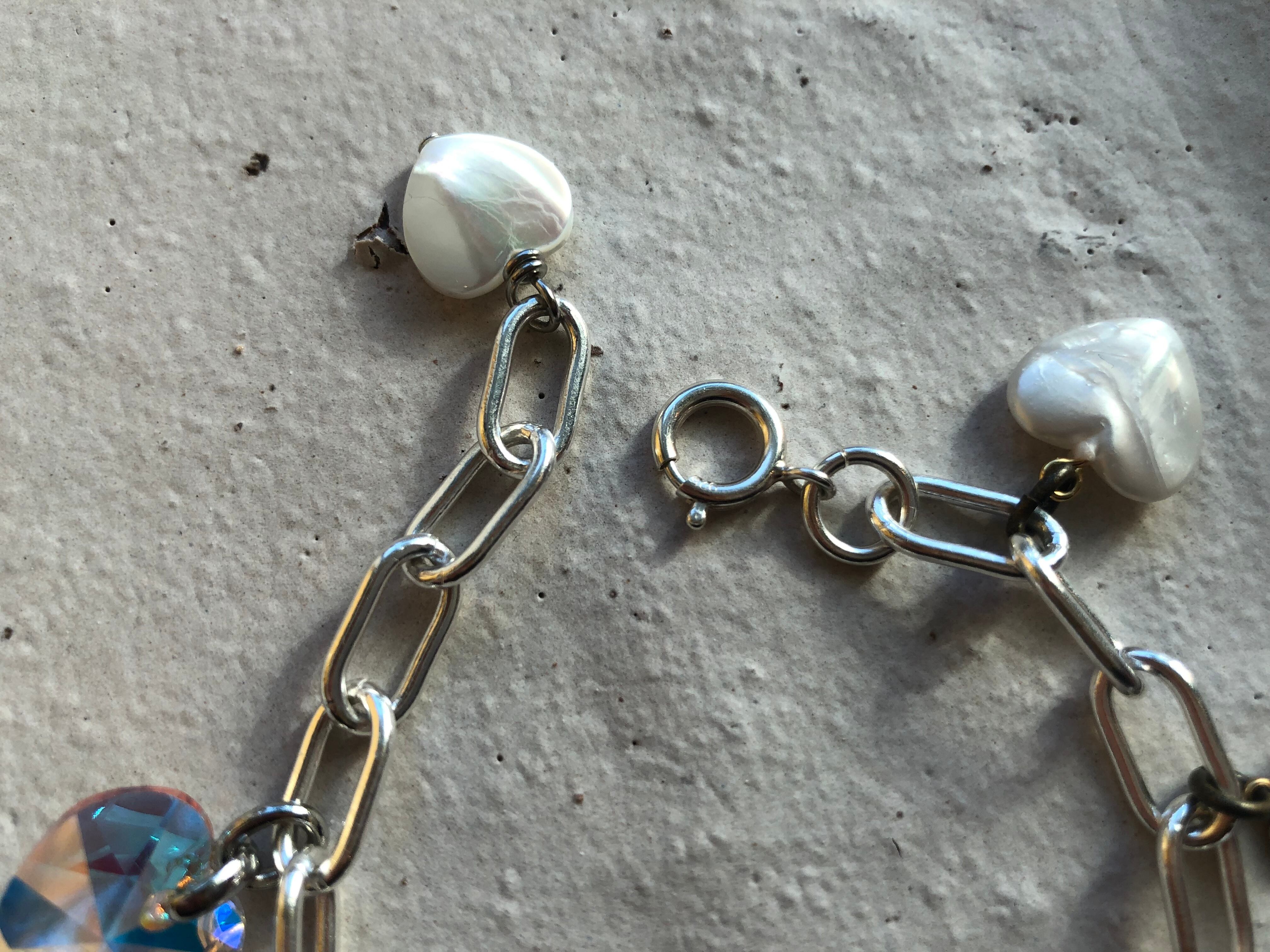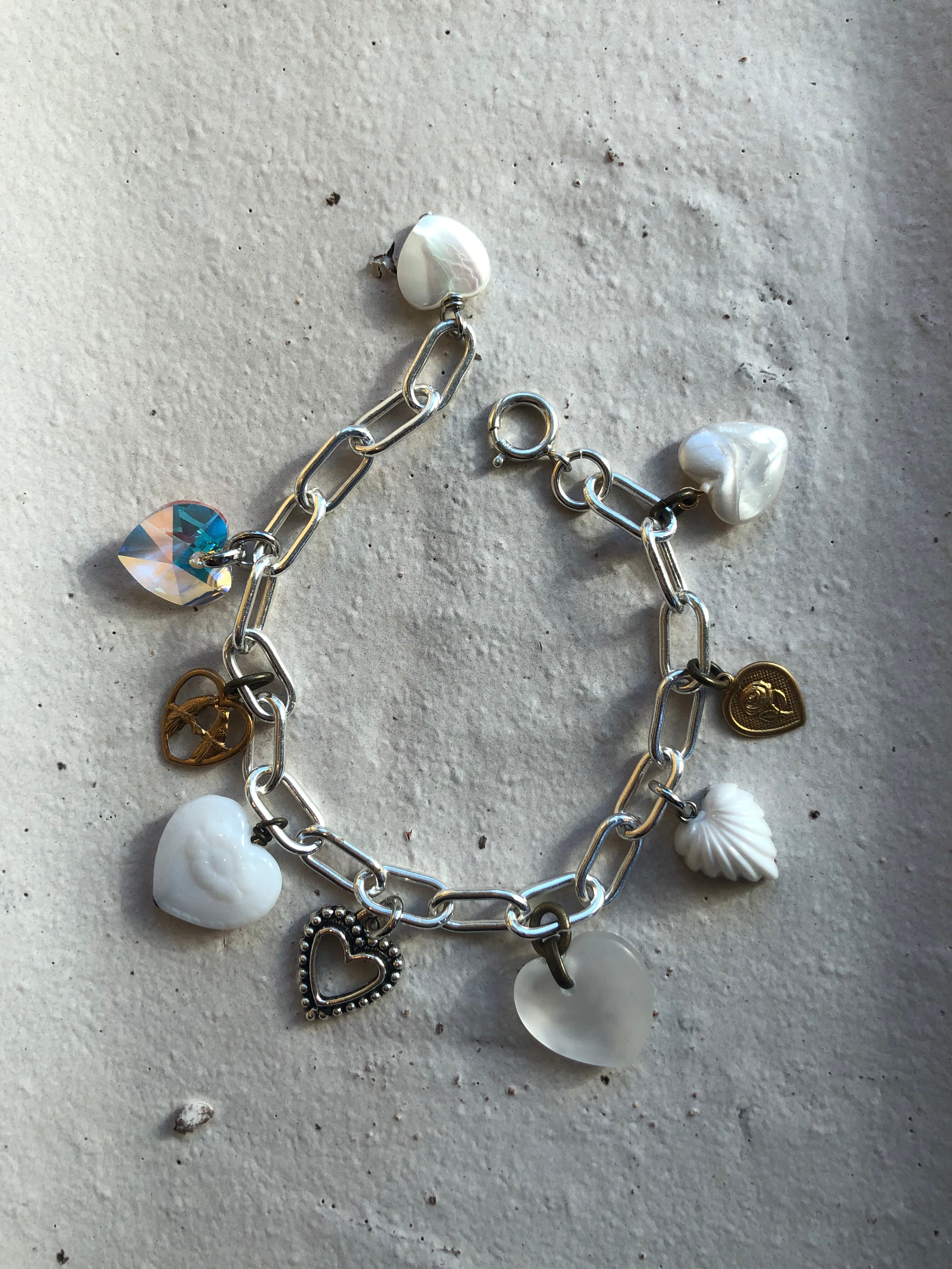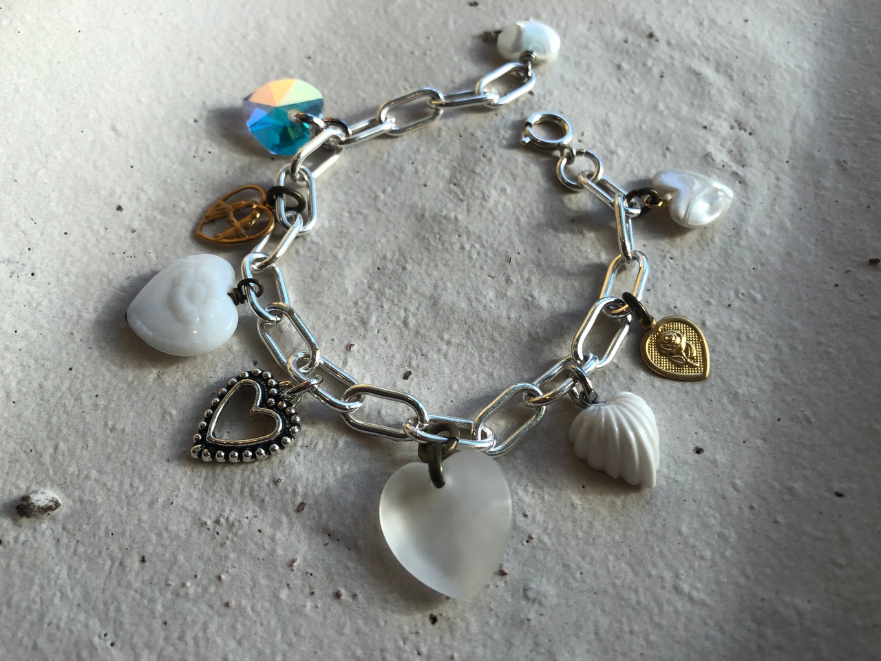 ホワイトのハートモチーフをメインにしたチャームブレスレット。