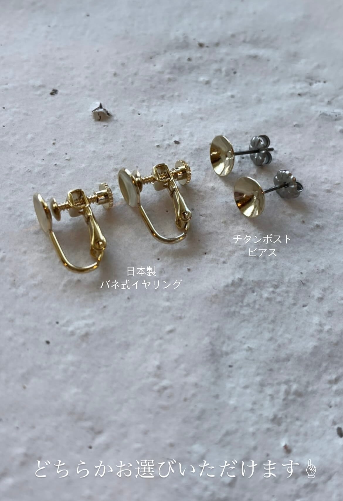 ✴︎画像はまだピアス、イヤリングパーツを装着しておりません。画像3枚目のパーツ、どちらかになります。ピアスのポスト(棒)はチタン製になります。イヤリングの方は備考欄に明記して下さい。何も明記がない場合はピアスになります。