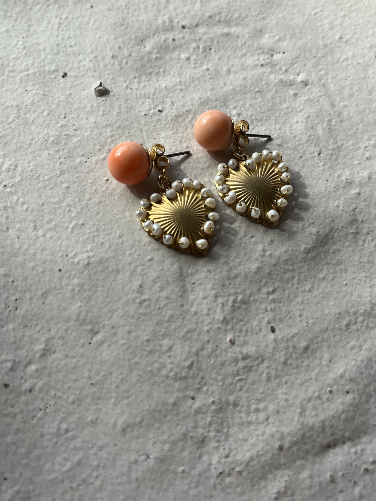 ※染め珊瑚ベージュ【Beige Coral】&パールの付いたハートキャッチの購入ページです。