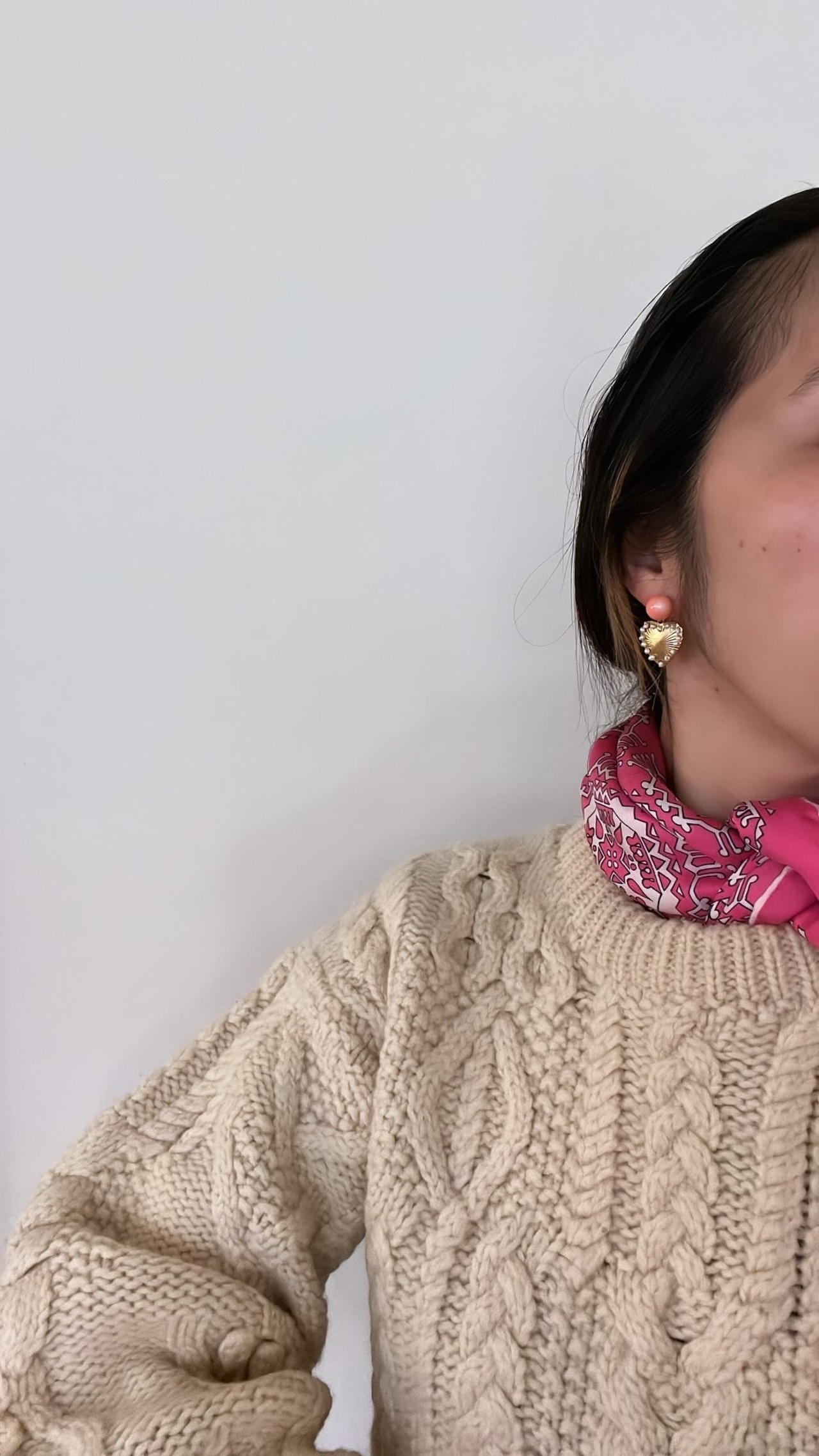 放射線の入ったちょっと主張の強めのハートのキャッチは耳の後ろにきます。シンプルながらも遊びが入ったピアスに仕上がりました。