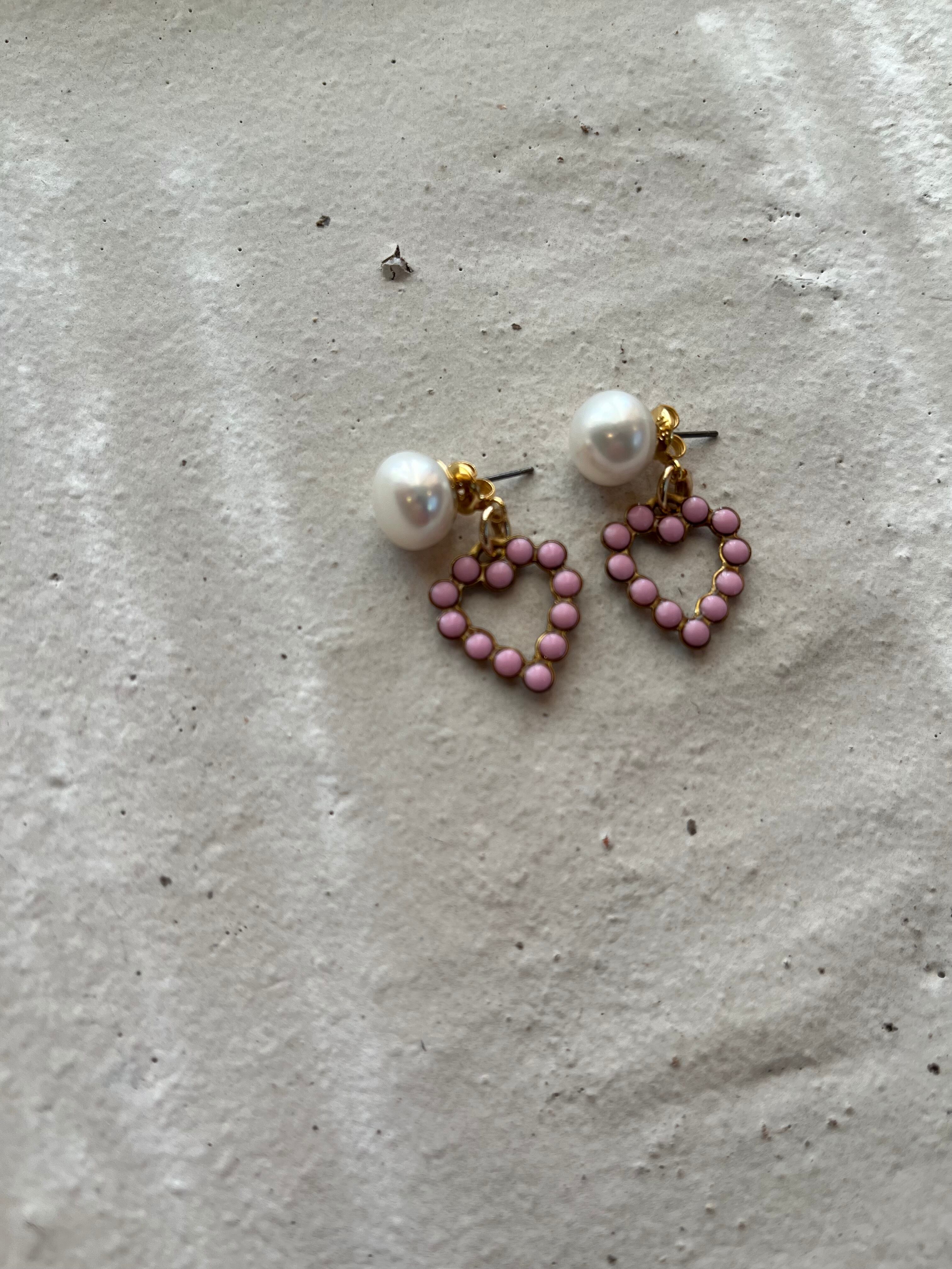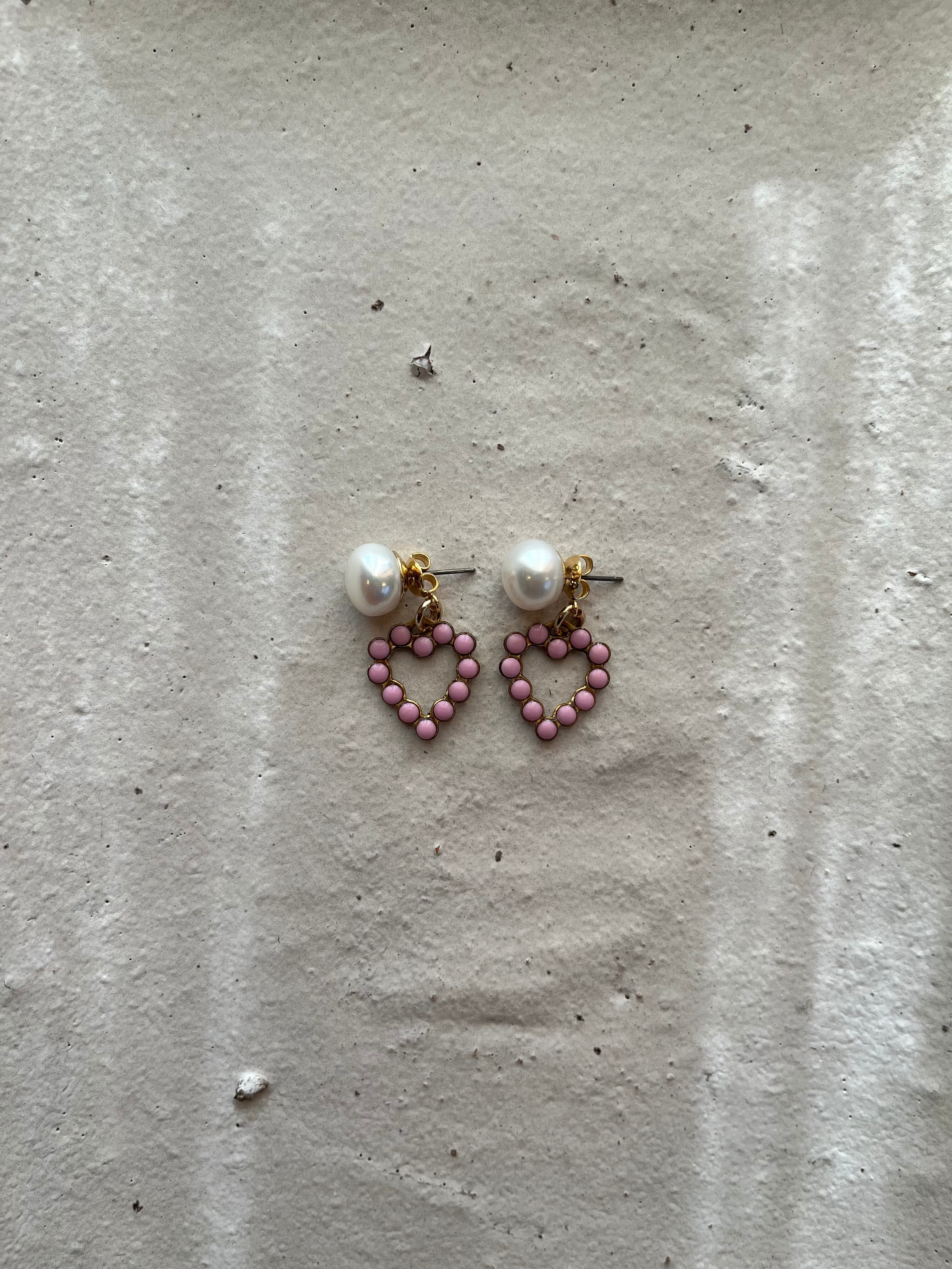 ハートのモチーフはvintageのスワロフスキーSWAROVSKIのピンク色のストーンが埋め込まれたもの。素材探しの際に数々のパーツを見てきましたがこちらはとても貴重なパーツかと思います。シンプルに大粒の淡水パールと合わせました。
