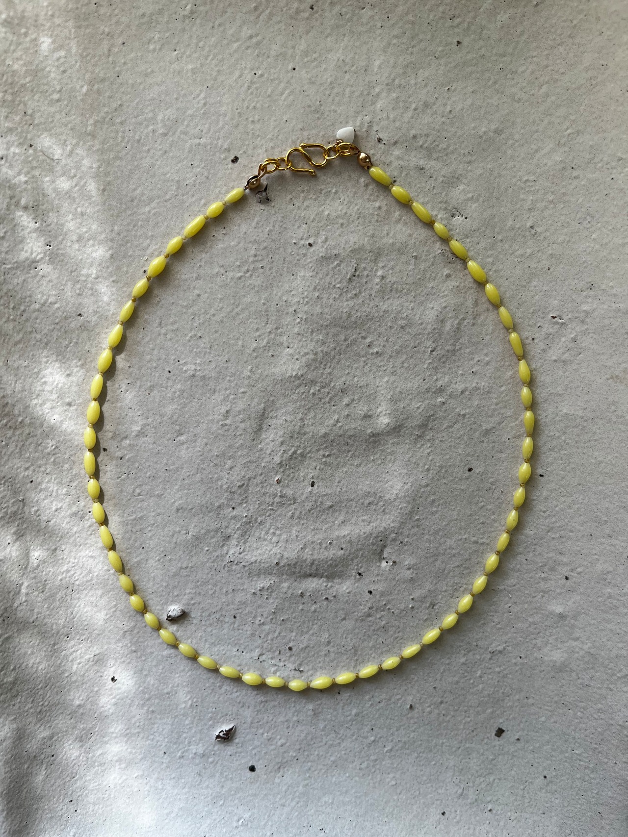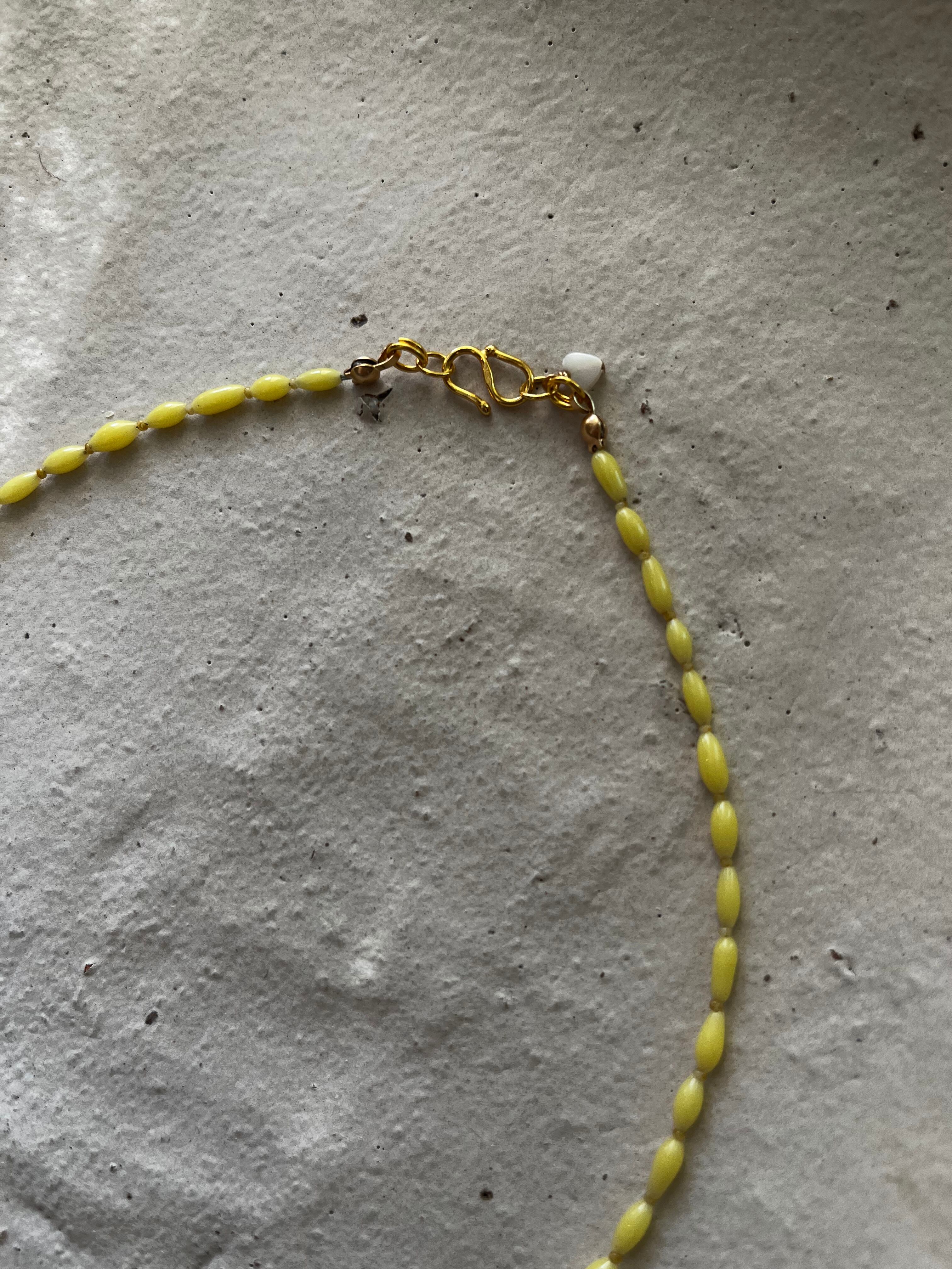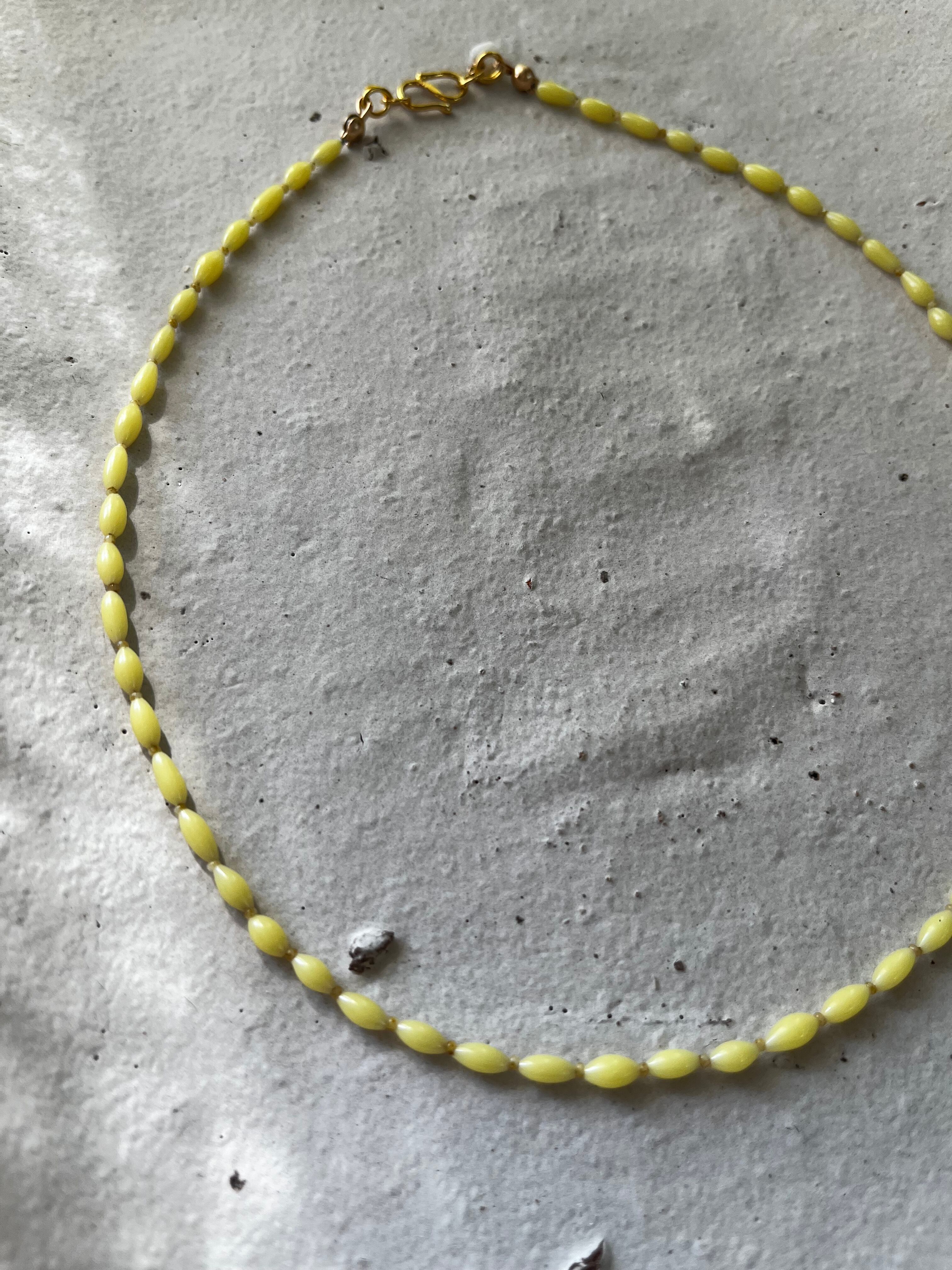 ジャパンヴィンテージのガラスビーズを使った軽いチョーカータイプのネックレス。淡いレモンイエローは肌馴染みも良く程よいアクセントになります。