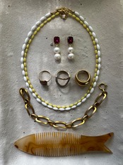 素材:ビーズ→ガラス、貝