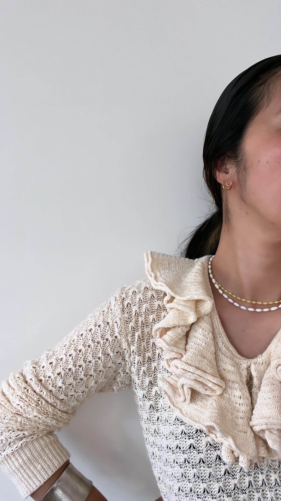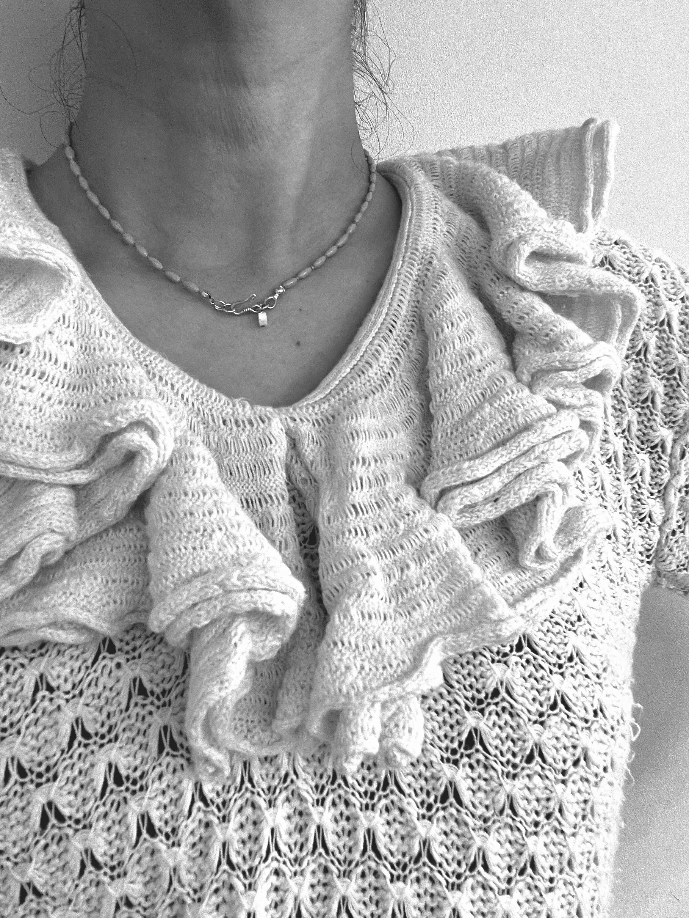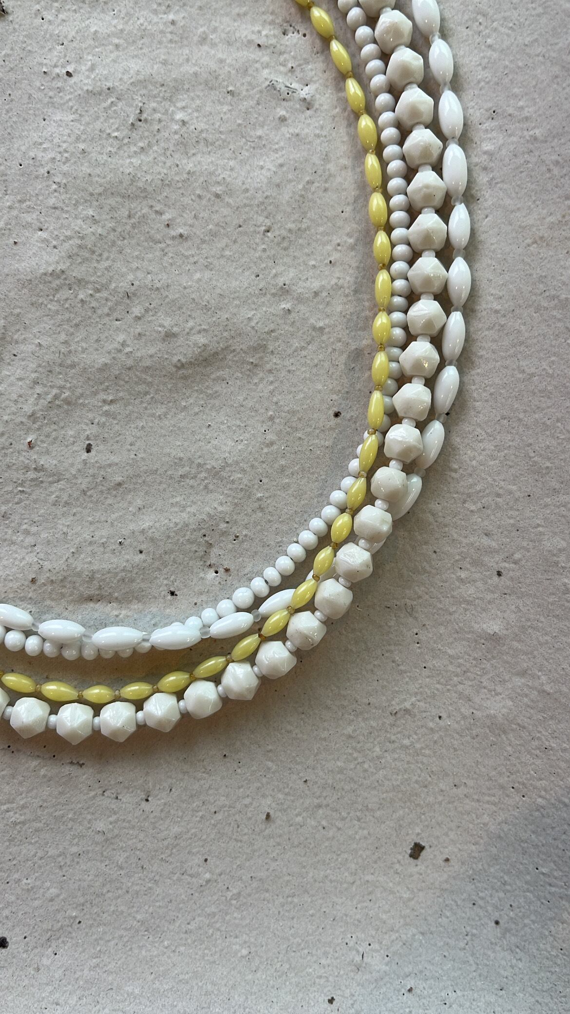 ジャパンヴィンテージのガラスビーズを使った軽いチョーカータイプのネックレス。ミルキーなホワイトは肌馴染みも良く程よいアクセントになります。間に入れたシードビーズはマットになります。