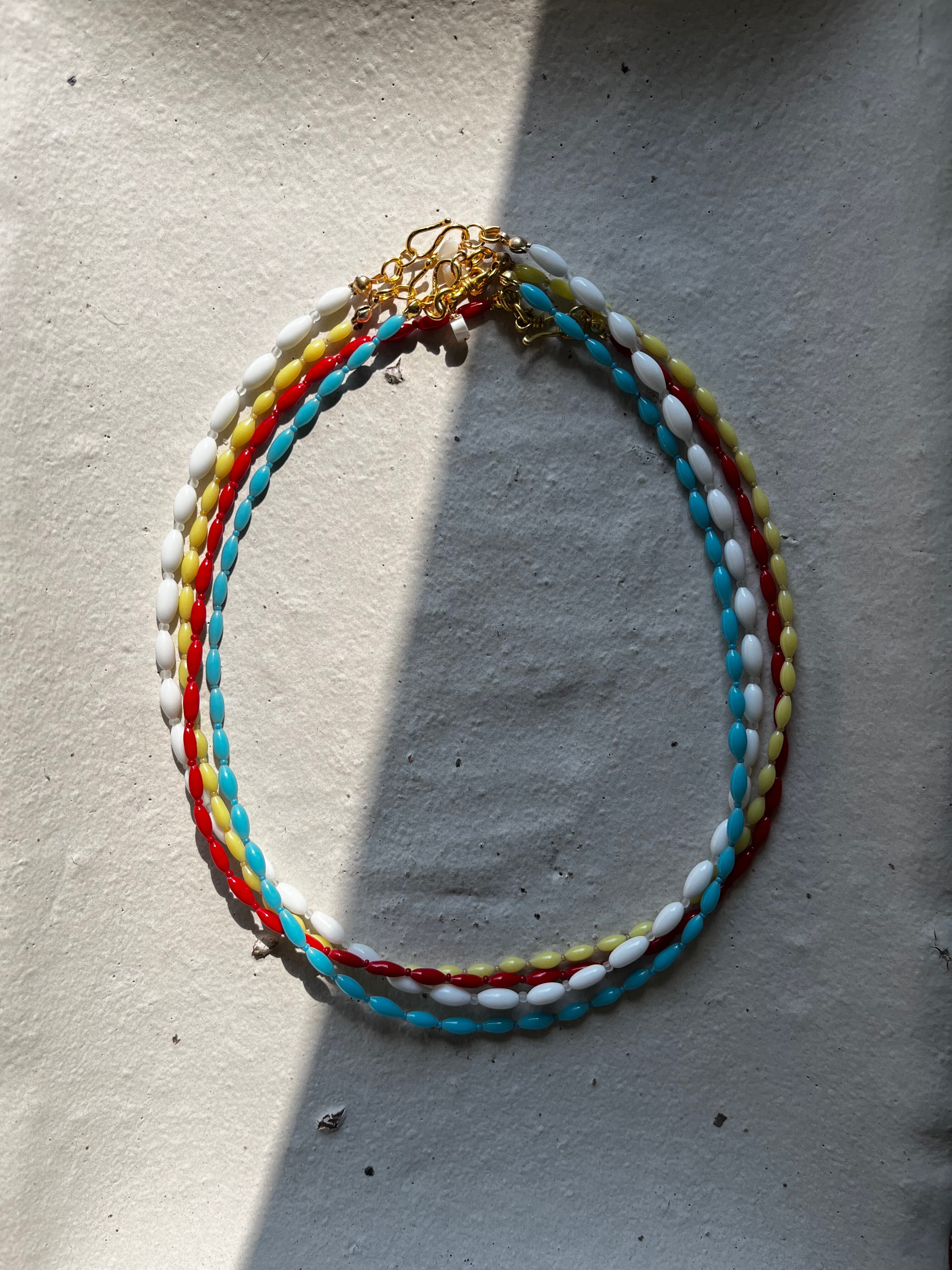 細めのお作りですが発色が良いビーズでしっかりとした存在感。ビーズ間には極小かそれより小さな小さなシードビーズをチョイスしました。シードビーズもアンティークかヴィンテージを。