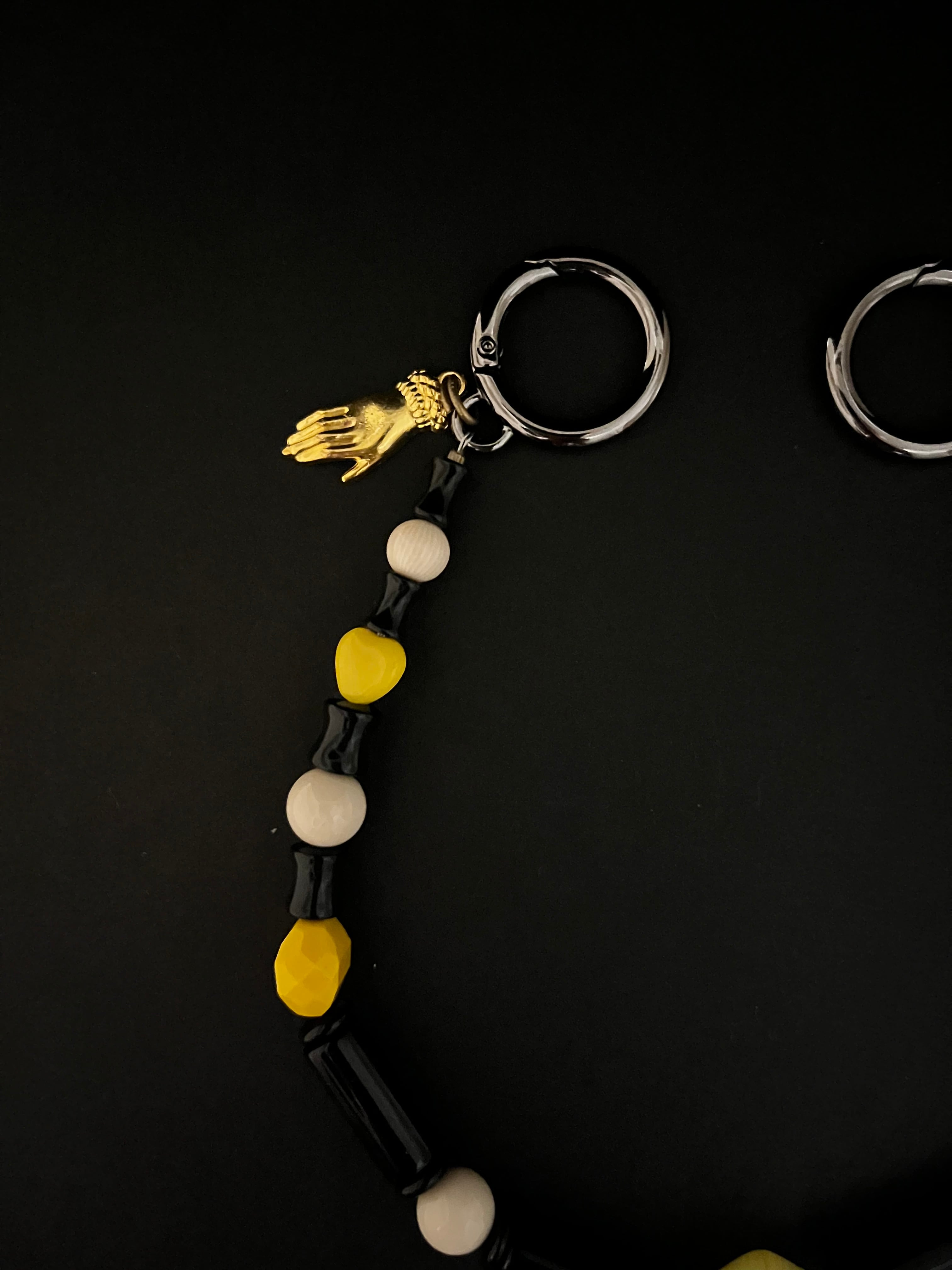 引っかける場所のある携帯ケースに付けて手首にかけられるストラップとして、カバンに付けてチャームとして、鍵を付けてキーホルダーにもお使いいただけます。