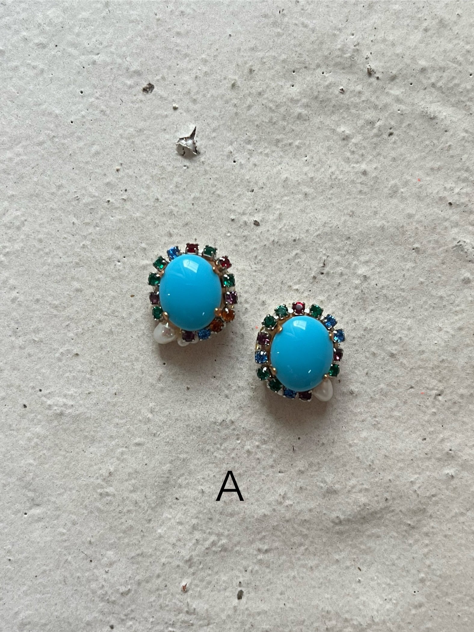 サイズ:直径約15㎜・ブルーのガラスストーン12㎜×10㎜